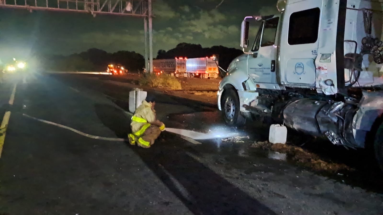 Camioneta se impacta contra pipa de aceite de palma y provoca cierre de carretera por más de una hora