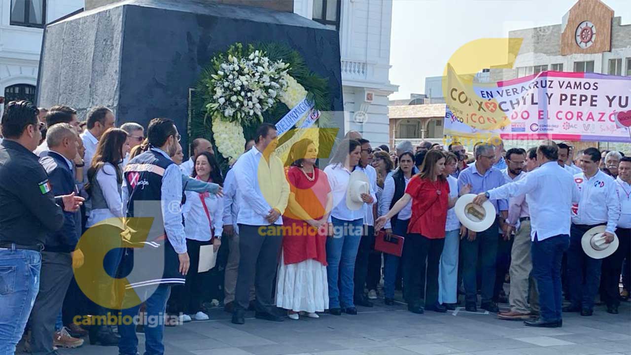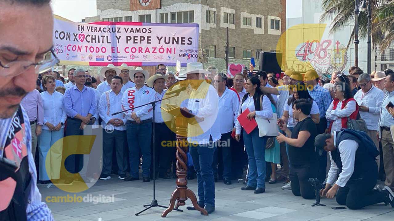 El acto agrario celebrado en la explanada del Faro Venustiano Carranza en Veracruz, fue encabezado por la precandidata presidencial del Frente Amplio, Xóchitl Gálvez y el precandidato a la gubernatura, José Yunes Zorrilla.