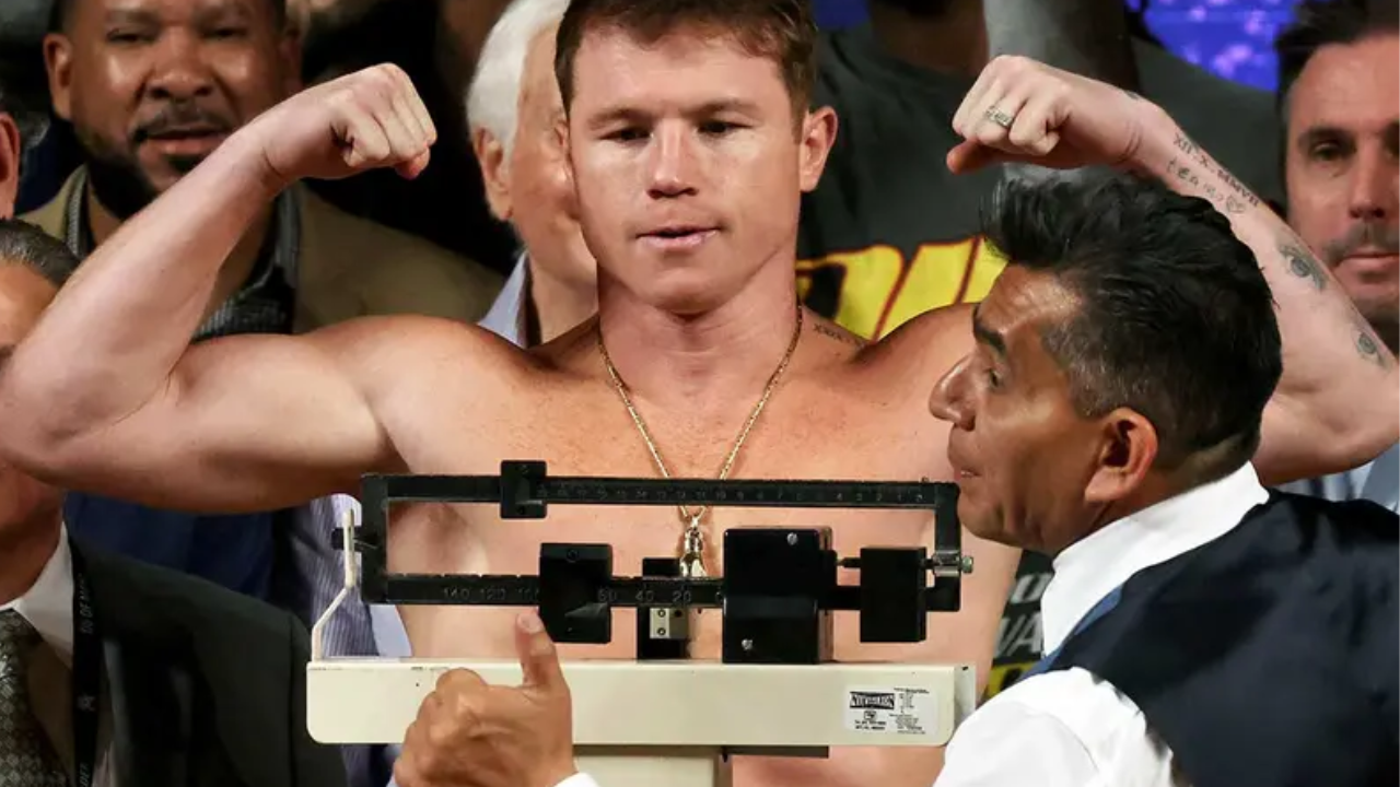 ’Canelo’ Álvarez, 61-2-2 con 39 nocauts, arriesga sus coronas de la AMB, el Consejo Mundial de Boxeo y la Organización Mundial de Boxeo contra el aspirante mejor clasificado de la AMB en la división de las 168 libras.