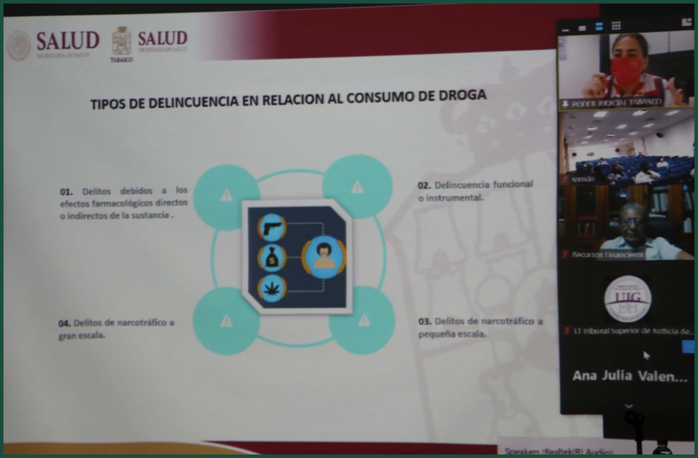Vía remota, el gerente del programa Justicia Terapéutica de la Secretaría Ejecutiva de la Comisión Interamericana para el Control del Abuso de Drogas, Jeffrey Zinsmeister, celebró la disposición y el trabajo desarrollados en Tabasco y México para implementar el proyecto.