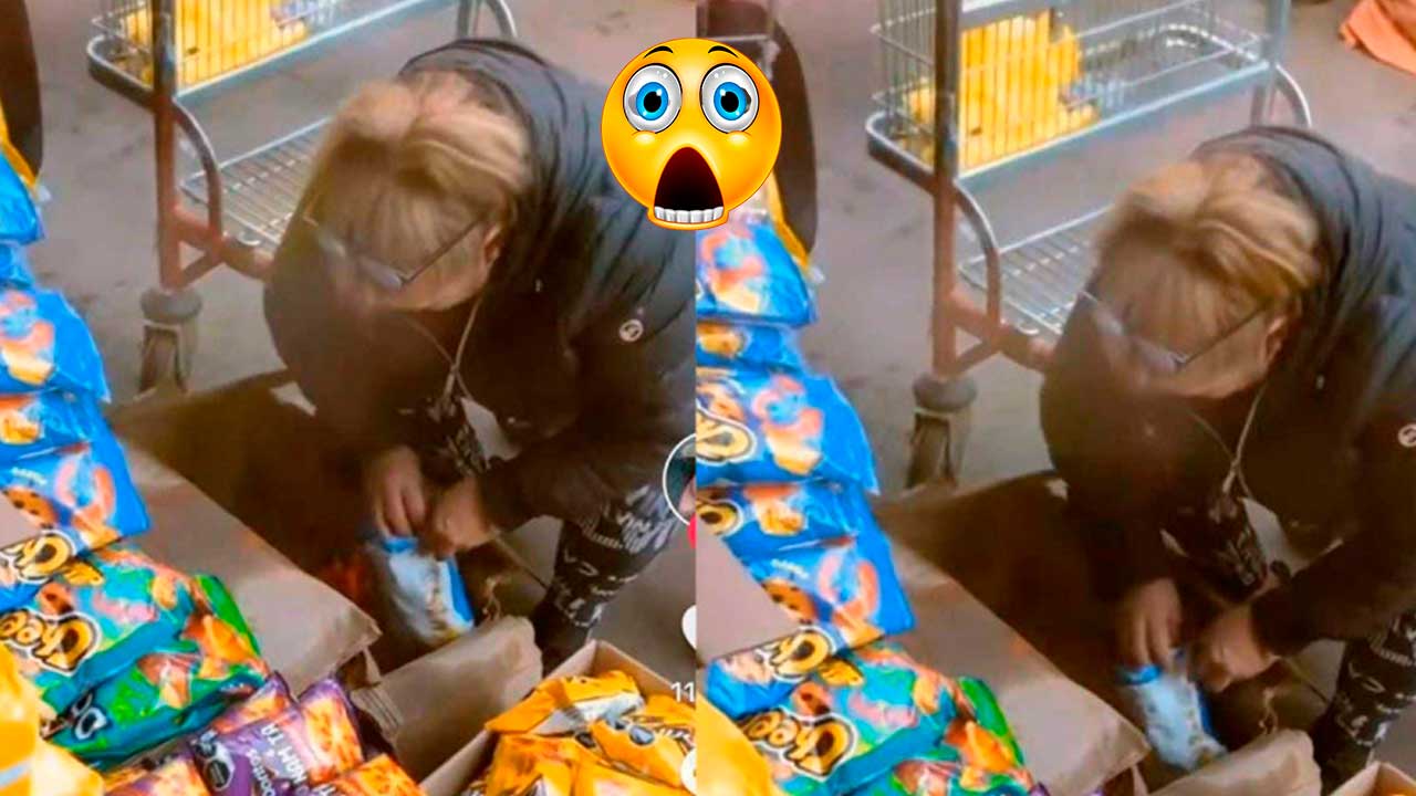 Un usuario de TikTok publicó las imágenes en donde se observa a la mujer sacando de una caja frituras para echarlas en una bolsa de Cheetos. La supuesta vendedora lleva las frituras al empaque con sus manos y sin utilizar ningún guante.