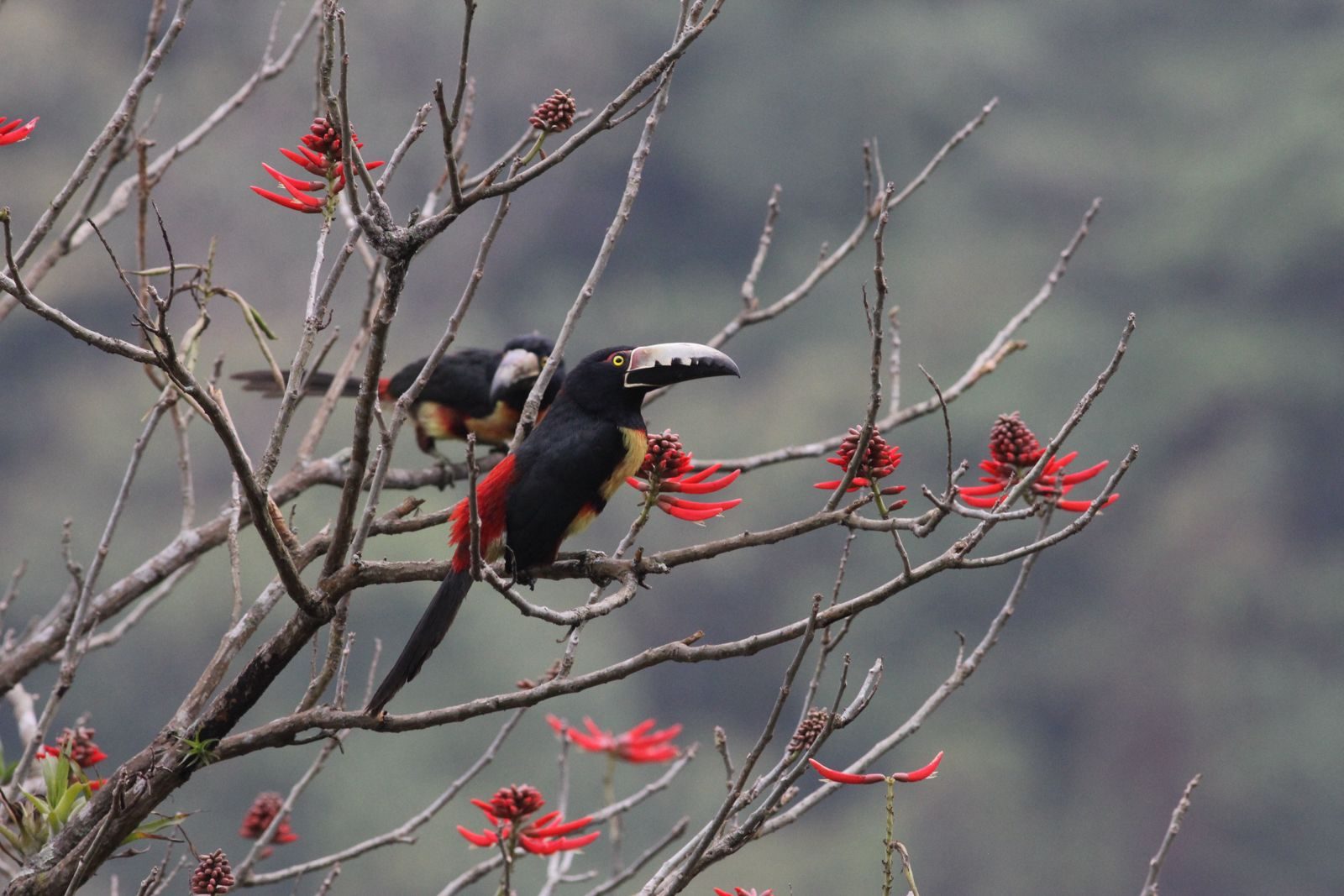 • Tucán collarejo (Pteroglossus torquatus), se observaron tres individuos.