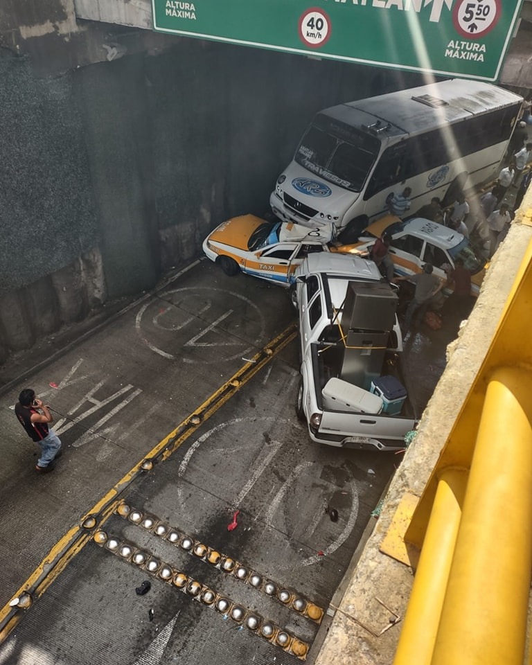 Una persona resultó prensada, herida de gravedad y cuatro más lesionadas, en el percance ocurrido bajo el paso a desnivel de la colonia Las Estaciones.