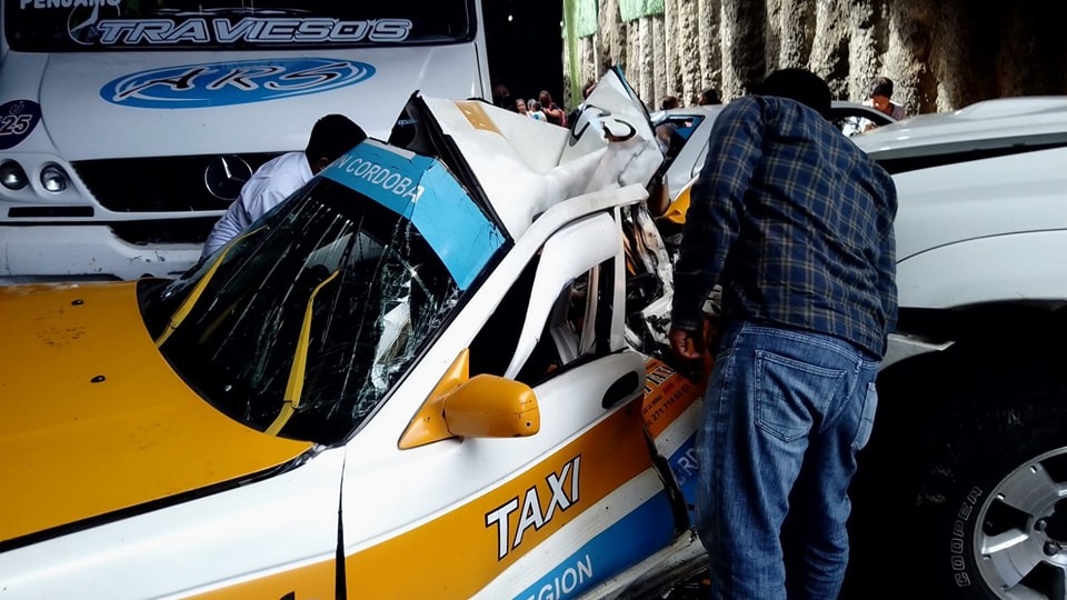 Córdoba, Ver.- Este martes en Córdoba se registró una carambola de cinco vehículos, tres de ellos de transporte público de pasajeros, una motocicleta y una camioneta.