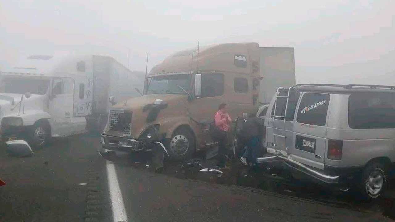 Veracruz.- La densa niebla, escasa visibilidad y falta de precaución al conducir, provocó la tarde de este martes un accidente múltiple en el que se vieron involucrados al menos ocho vehículos, entre ellos camiones de carga.