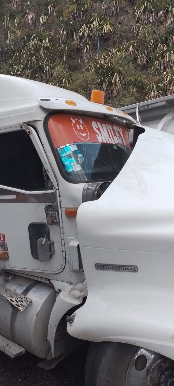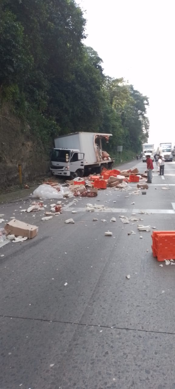 Ixtaczoquitlán, Ver.- Esta tarde se registró en la autopista Veracruz-Puebla, a la altura de Ixtaczoquitlán, una carambola de cuatro vehículos de carga.