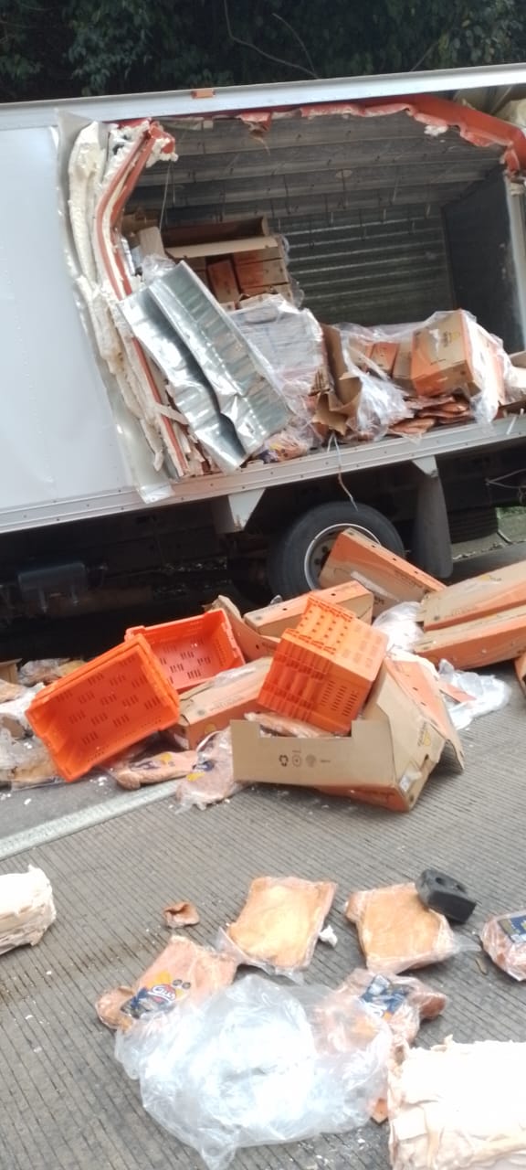 La carne quedó regada sobre la carpeta asfáltica y gran parte de ella fue sustraída por personas que llegaron al lugar.