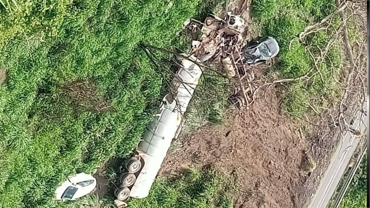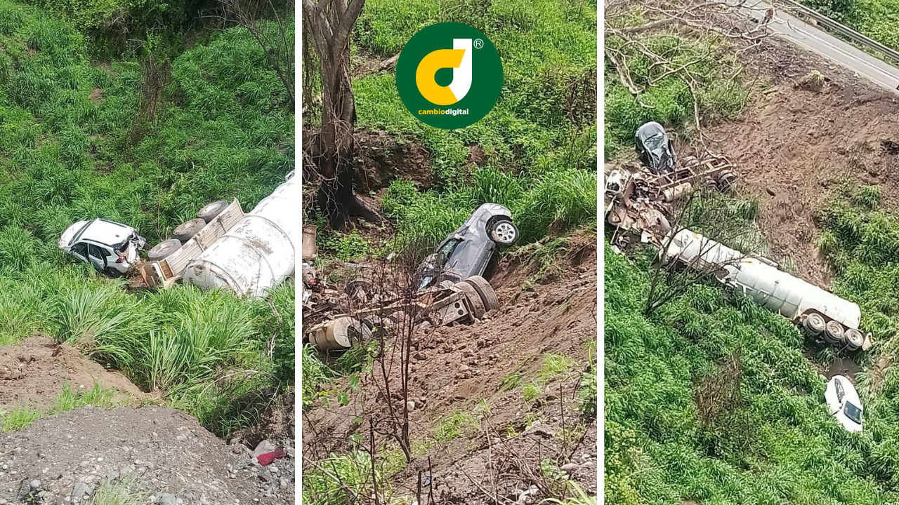 Tanto la pipa como los autos se salieron de la carretera y cayeron varios metros abajo.
