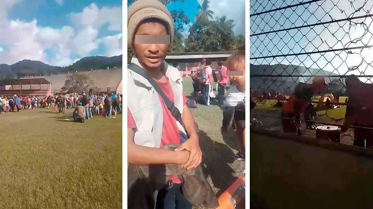 Familias completas, hombres y mujeres de diversas edades pernoctaron en un parque de esa comunidad, donde esta mañana los pobladores les llevaron alimentos y agua, así como ropa, zapatos y artículos de higiene personal.