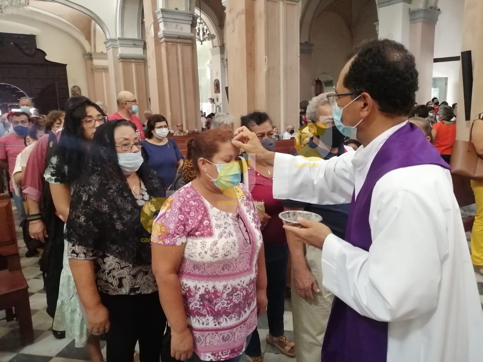 Veracruz, Ver.- Cientos de fieles creyentes han acudido a la Catedral de Veracruz para celebrar el Miércoles de Ceniza, acto con el cual la iglesia católica dio inicio al periodo de cuaresma.