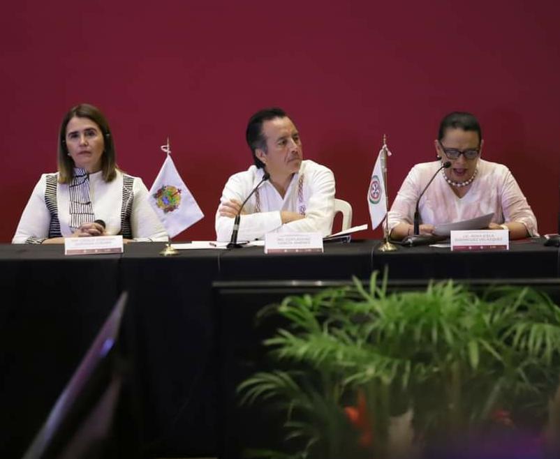 Xalapa, Ver.- La presidenta de la Mesa Directiva de la LXVI Legislatura del Congreso del Estado, diputada Cecilia Guevara, acompañó al gobernador de Veracruz, Cuitláhuac García Jiménez, y a la secretaria de Seguridad y Protección Ciudadana del Gobierno de México, Rosa Icela Rodríguez Velázquez, a la inauguración de la XXV Asamblea Plenaria de la Conferencia Nacional del Sistema Penitenciario, en la ciudad de Boca del Río, Veracruz.
