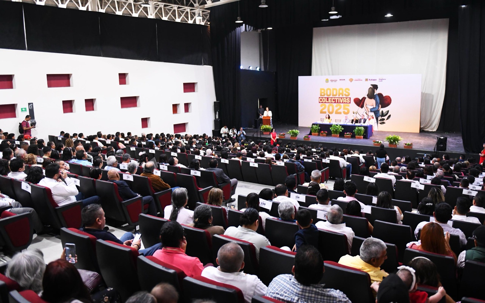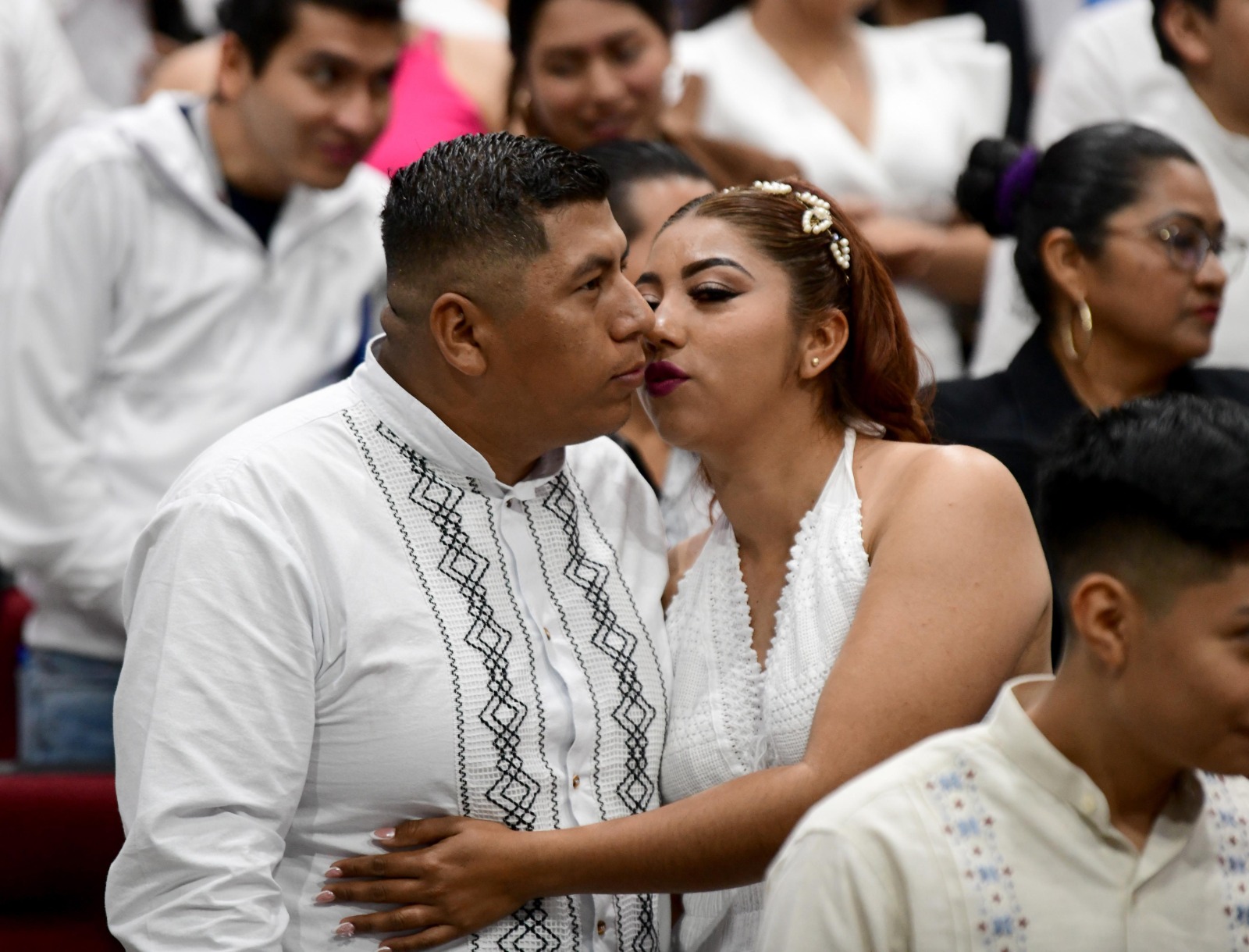 Como parte de la campaña Bodas Colectivas 2025, se celebró el casamiento de parejas que tenían desde uno hasta 46 años de vivir en unión libre, así como matrimonios igualitarios.