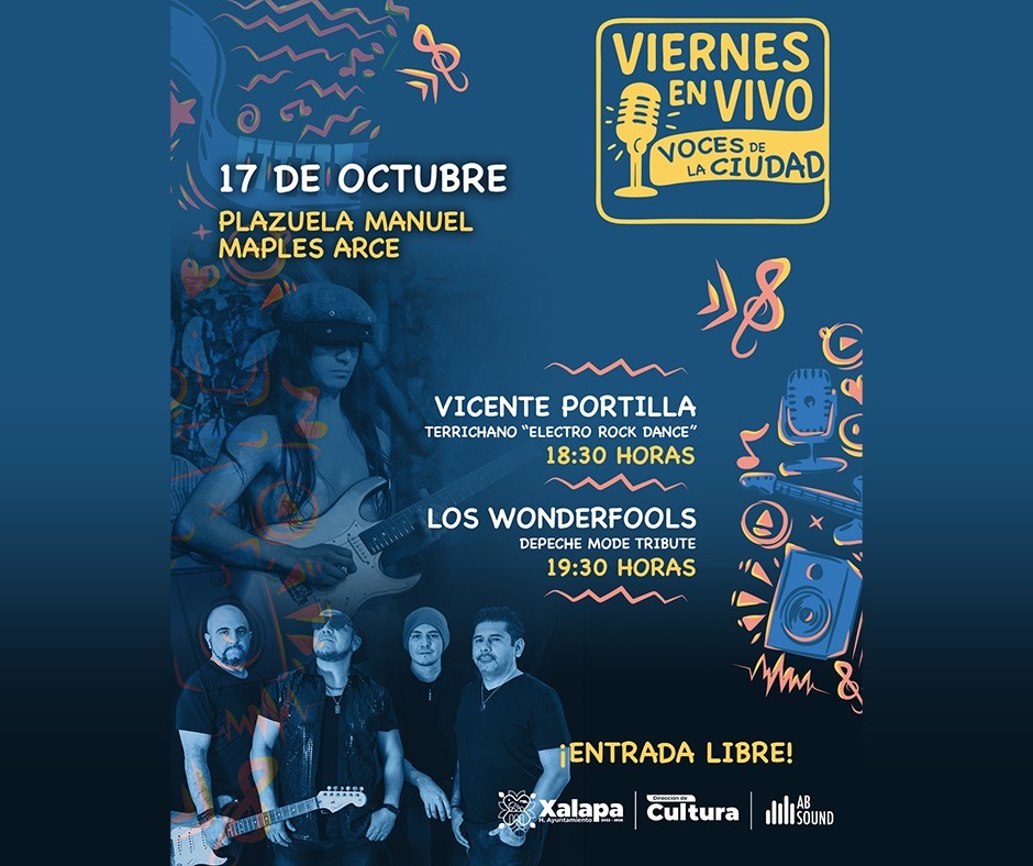 En el CRX, a las 18:00 horas, se realizará el conversatorio “Xantolo, el papel de las mujeres en esta danza”. Media hora más tarde, en la Plazuela “Manuel Maples Arce”, se llevará a cabo el programa “Viernes en Vivo, Voces de la Ciudad”, con la música de Vicente Portilla y los Wonderfools.