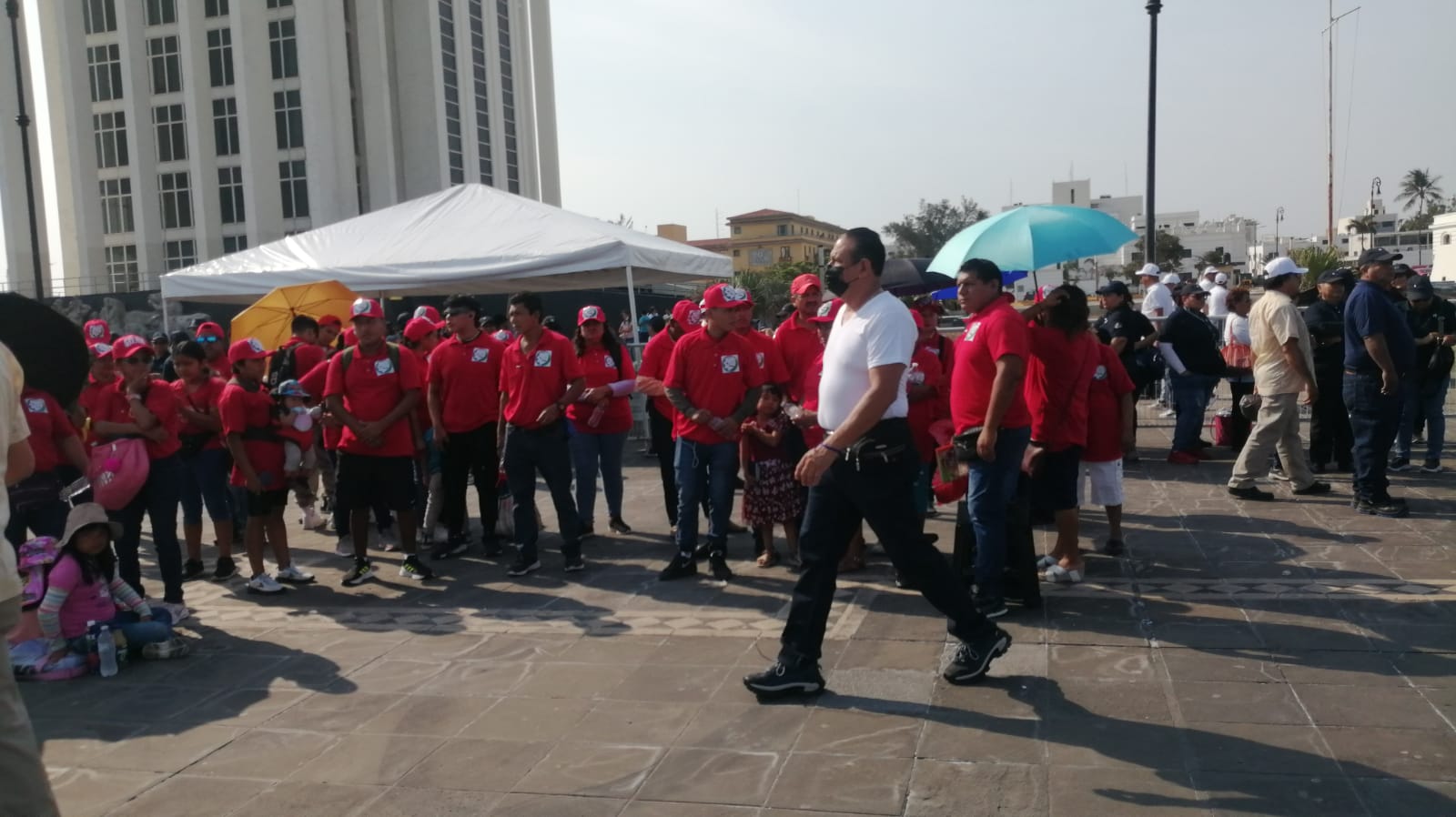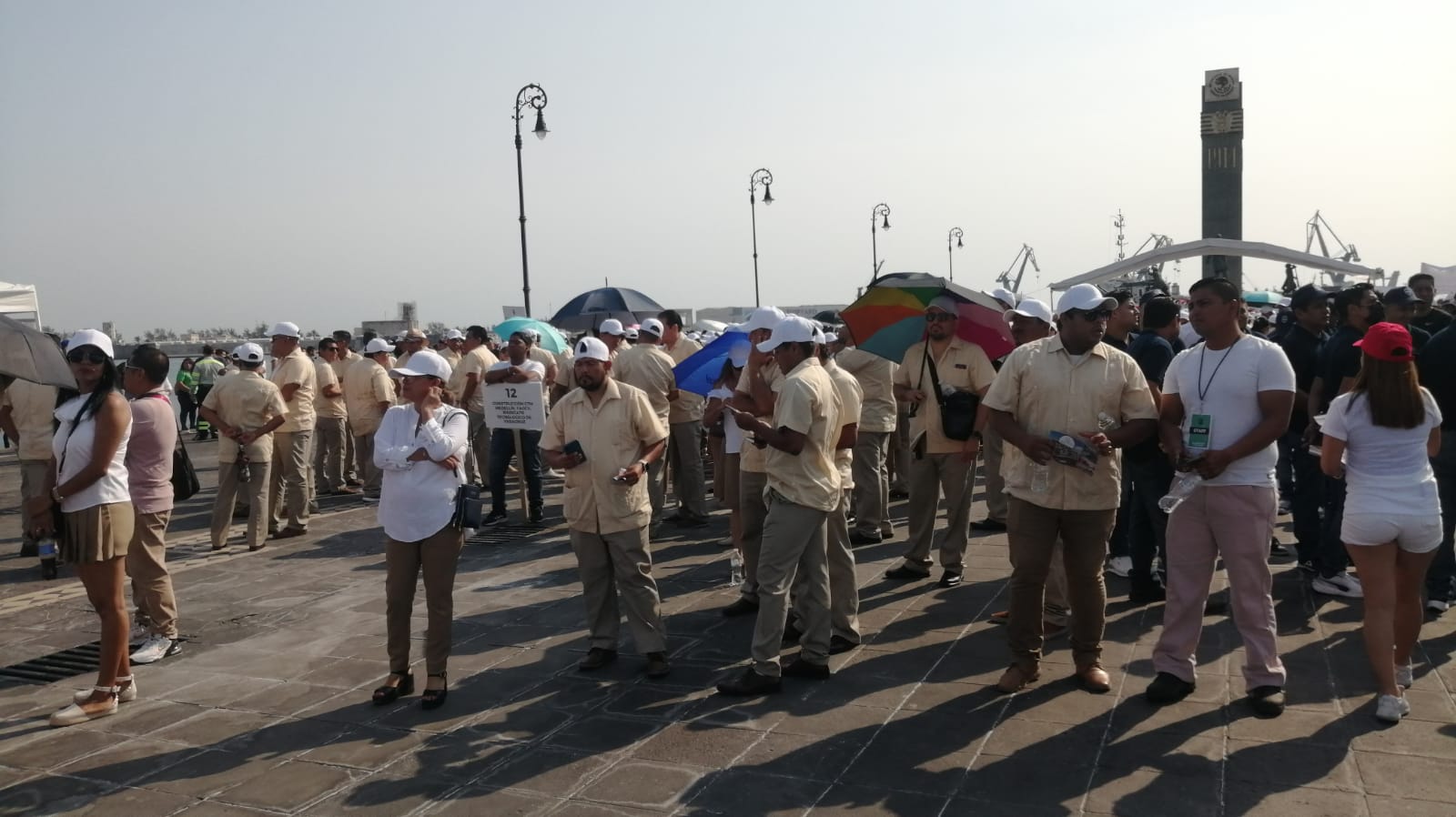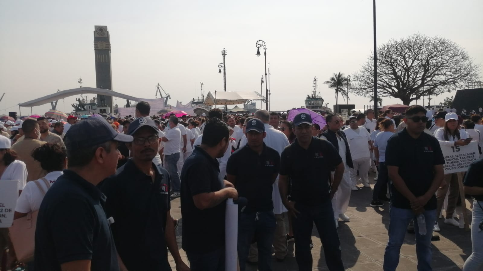Empleados del sindicato del Ayuntamiento de Veracruz, del sindicato de Comisión Federal, sindicatos de taxistas y de la empresa Tenaris Tamsa abarrotaron la plancha de la Macroplaza del Malecón.