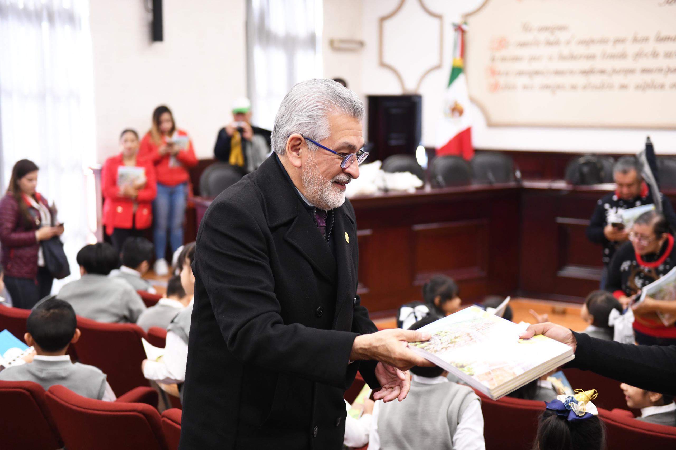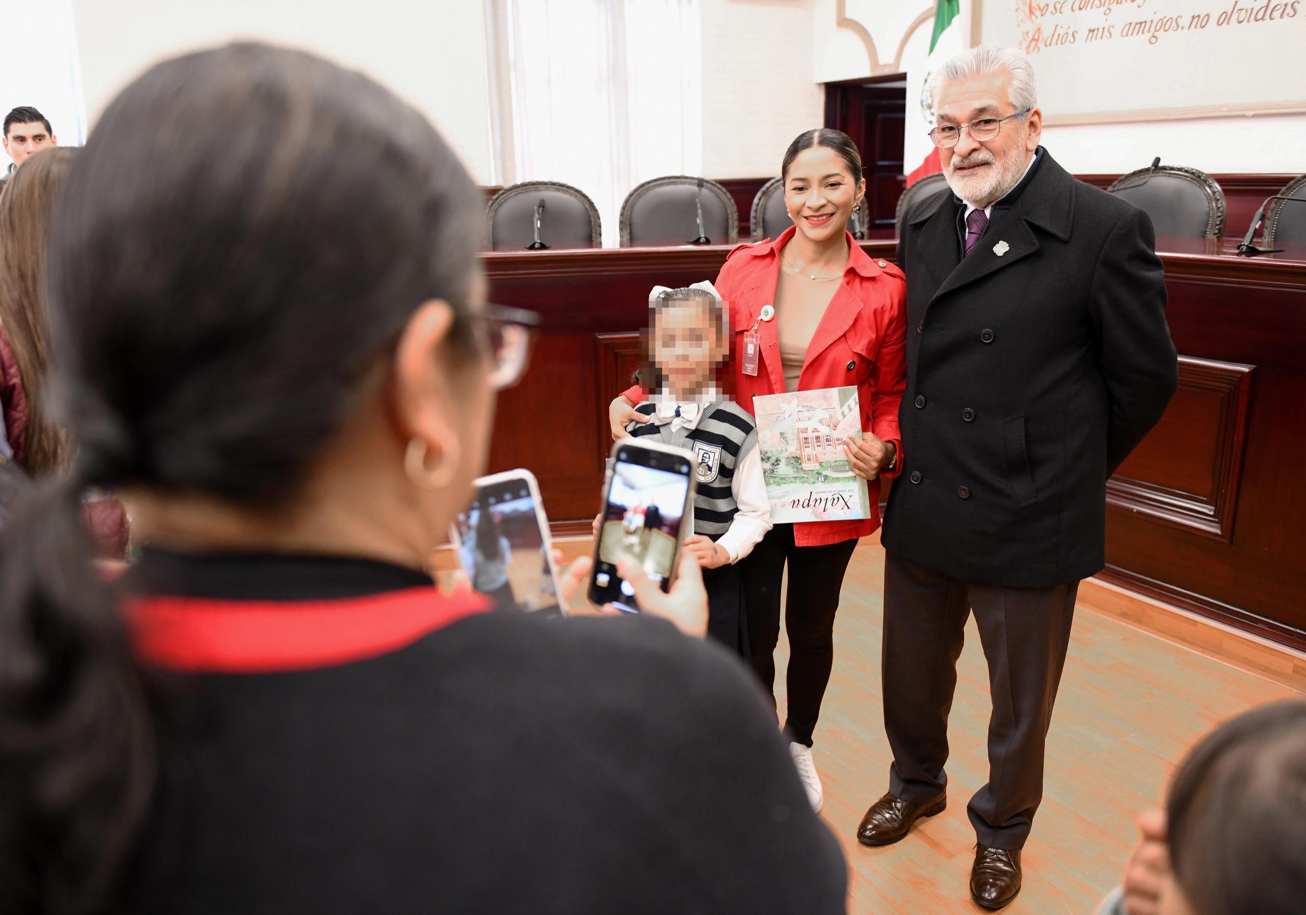 Ante la regidora María Guadalupe Márquez Leonardo, los regidores Carlos Ortega Murguía y Daniel Fernández Carrión, así como alumnado, personal docente y padres de familia, el edil afirmó que el Palacio Municipal es la casa de todas y todos los xalapeños y felicitó a las y los alumnos por participar en la conservación de las tradiciones decembrinas.
