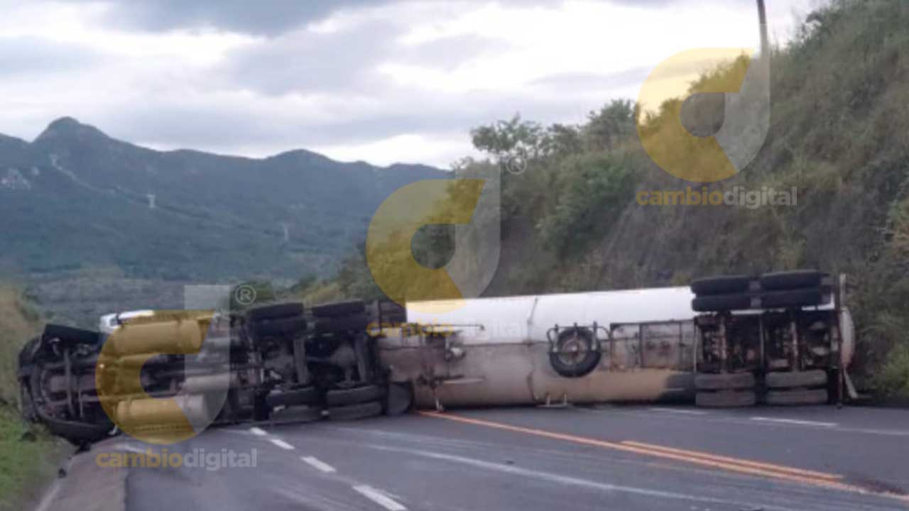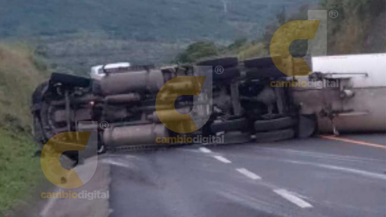 Cerrada, la autopista Totomoxtle a Cardel por volcadura de un doble remolque con Gas LP
