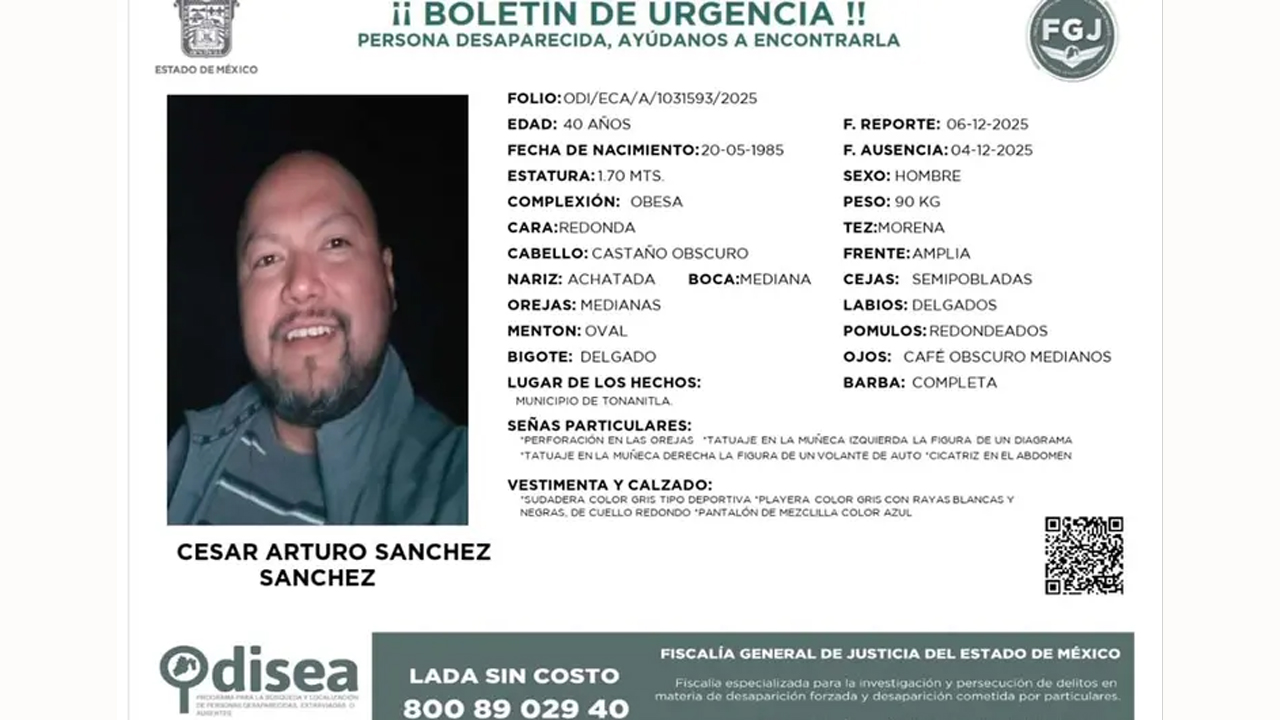 De acuerdo a la ficha de búsqueda emitida por las autoridades mexiquenses el pasado 6 de diciembre del presente año en el municipio de Tonanitla, uno de los 125 municipios del Estado de México, y de los 7 municipios que integran la Región Zumpango.