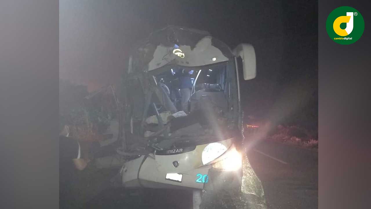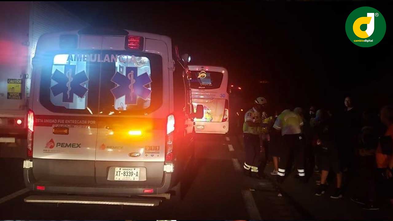 Aparentemente el operador del autobús perdió el control cuando intentaba rebasar y chocó contra un tráiler que se retiró del sitio del percance.