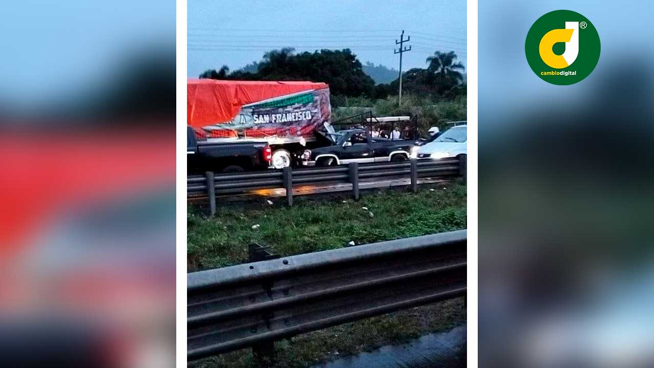 Ixtaczoquitlán, Ver.- Este miércoles, una camioneta impactó por alcance a un camión tipo torton con peregrinos y este a su vez a un automóvil, en la autopista Veracruz-Puebla, a la altura del kilómetro 283, entre las comunidades de Sumidero y Buenavista, en el municipio de Ixtaczoquitlán.