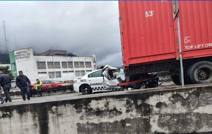 Choca patrulla de la Guardia Nacional contra tráiler en Río Blanco