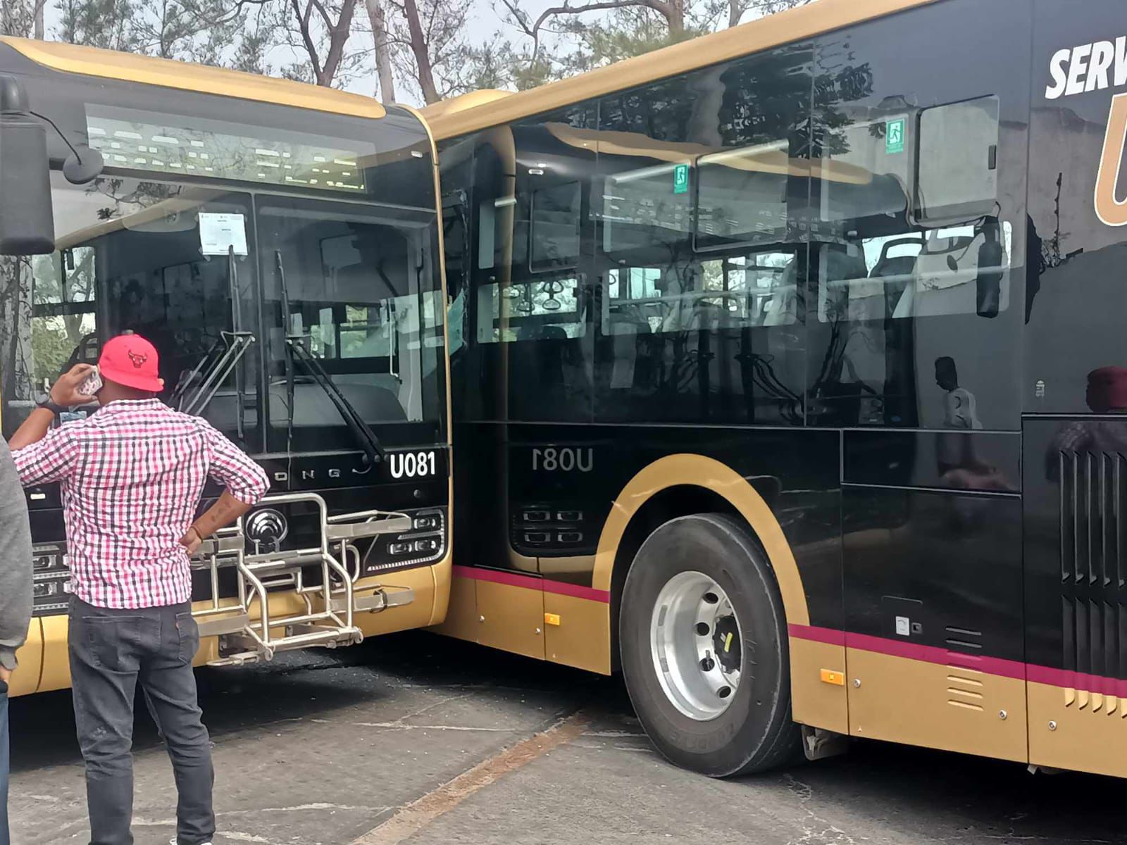 Veracruz, Ver.- Este jueves, dos autobuses de la línea Ulúa chocaron en calles del fraccionamiento Residencial del Bosque, en el municipio de Veracruz.