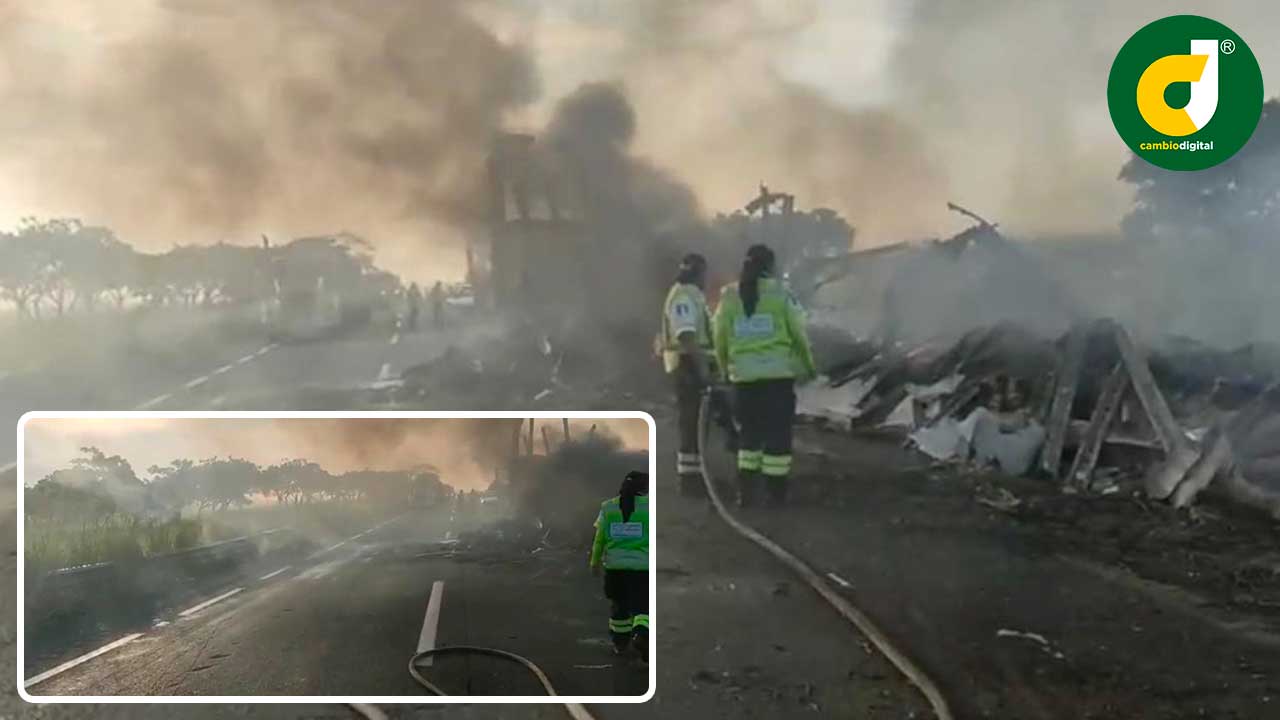 Chocan y se queman tráileres en autopista 145-D