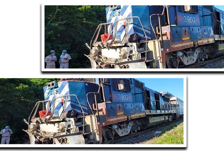 Coatzacoalcos, Ver.- Esta mañana dos trenes chocaron de frente a escasos metros de la caseta de peaje del puente Coatzacoalcos Uno.