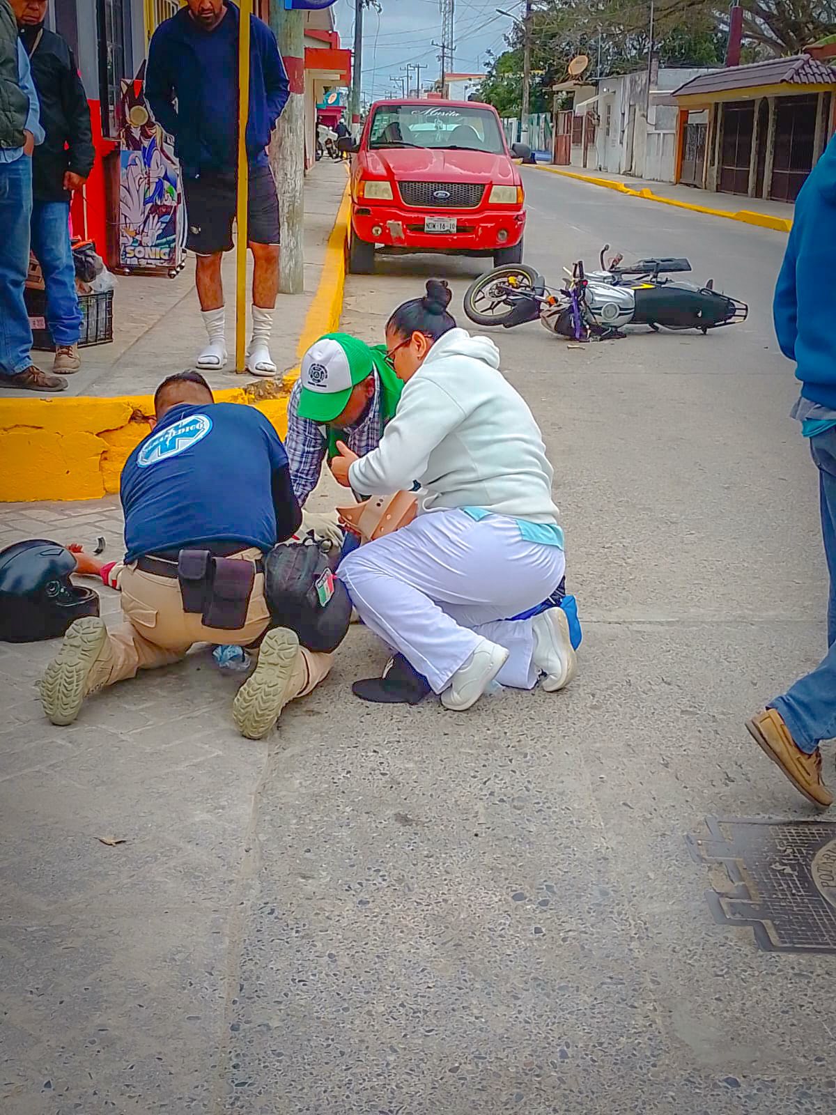 Tamiahua, Ver.- Elementos de Protección Civil y el equipo de Salud Municipal respondieron el domingo a un reporte ciudadano sobre un accidente vial registrado frente a la Biblioteca Municipal, en la calle Miguel Hidalgo.