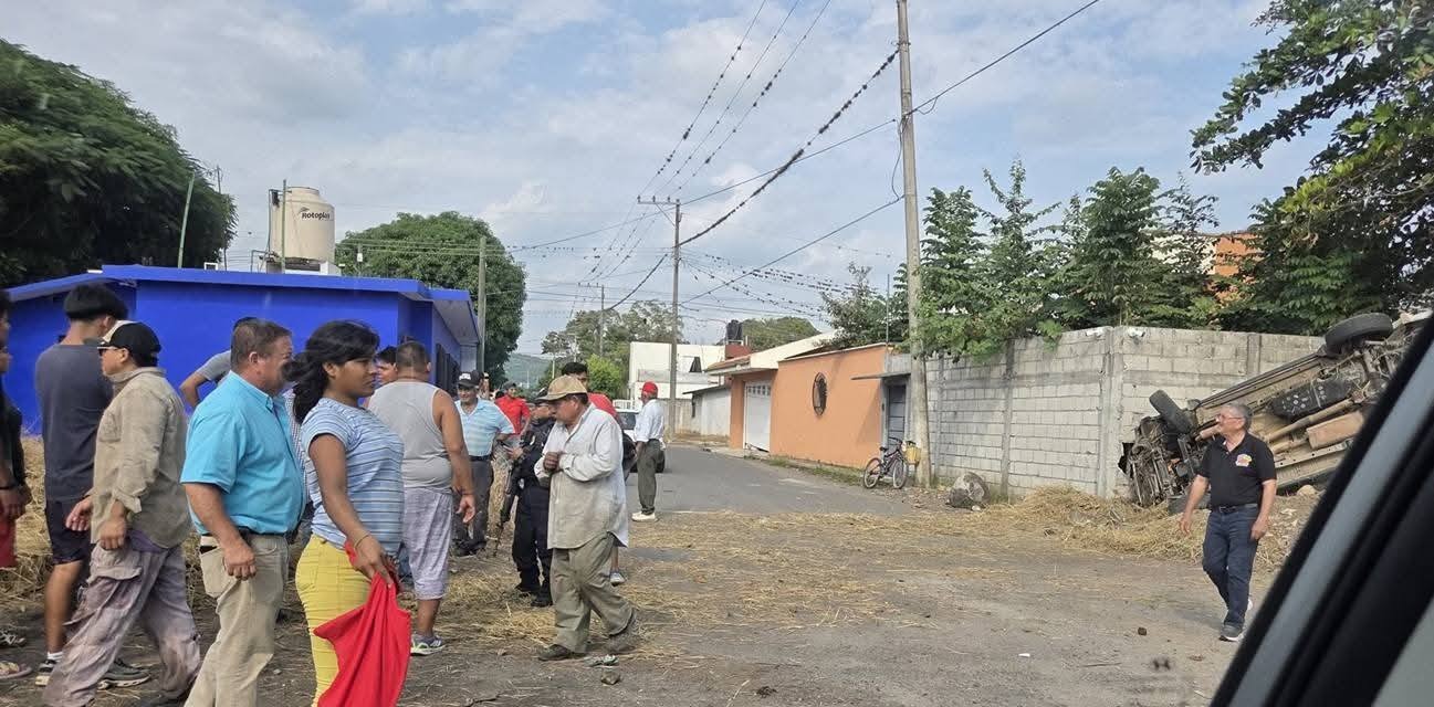 En la carretera federal 150 a la altura de la desviación de Cuitláhuac una camioneta terminó volcada y los ocupantes de esta y de una moto lesionados.