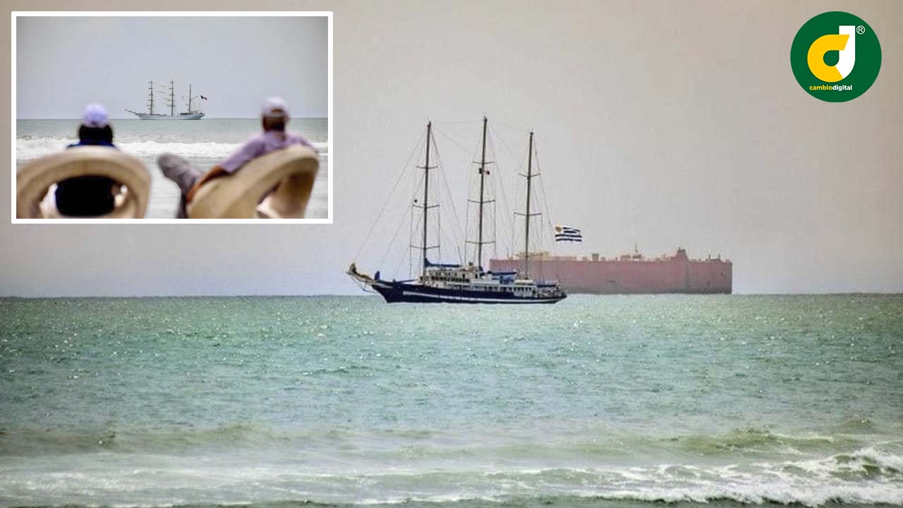 Las embarcaciones se encuentran fondeadas, aún lejos, esperando el pase de lista que realizará el buque Papaloapan de la Secretaría de Marina Armada de México.
