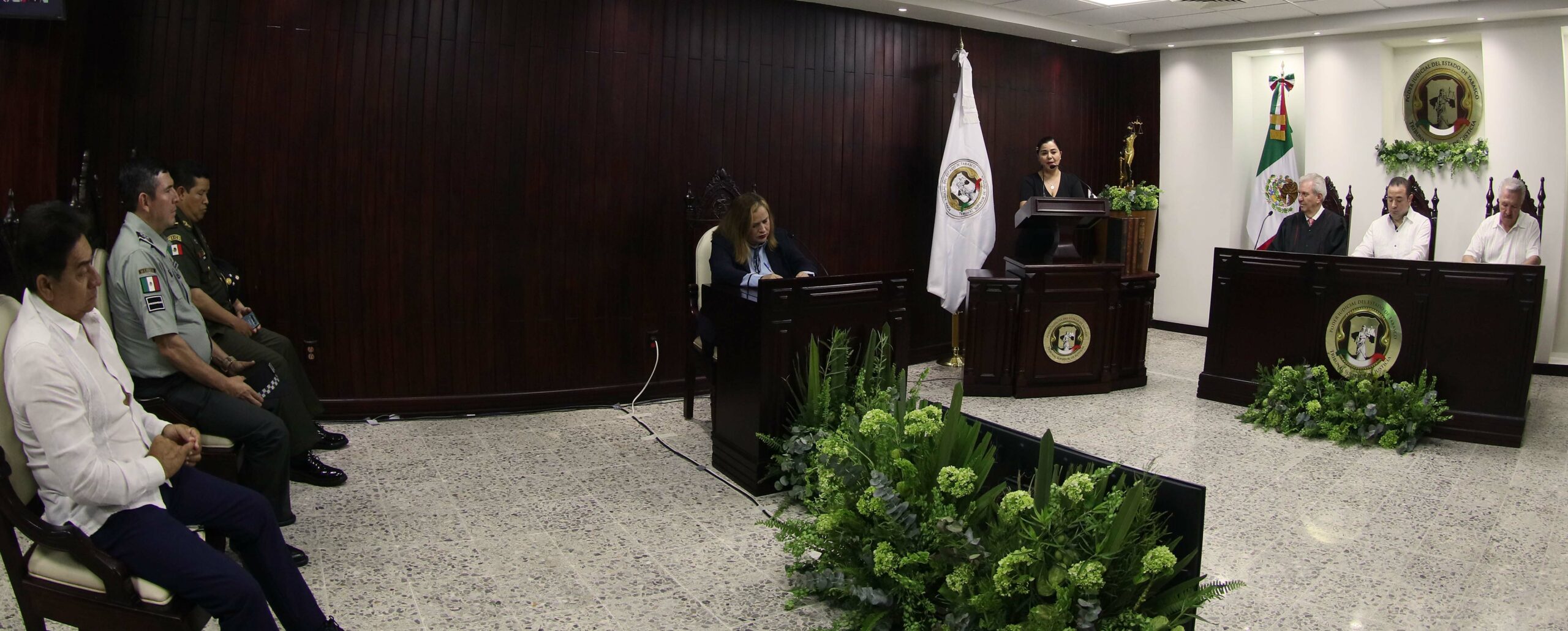 En el salón de plenos Eduardo Alday Hernández, el funcionario encabezó la sesión solemne en la que se dio a conocer que Patricia Sánchez Romero fue designada juzgadora del año, y ratificó su firme compromiso para mejorar diariamente la labor incansable de salvaguardar el legítimo Estado de derecho y dar a cada quien lo que por derecho le corresponde, la cual asumió desde el 1 de enero de 2019.