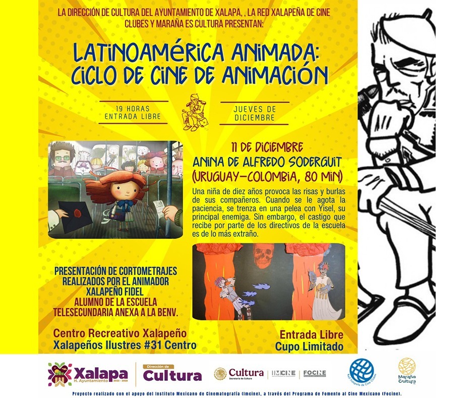 A las 19:00 horas, en el CRX, se proyectará la película “Anina”, dentro del ciclo de cine Latinoamérica Animada; en Palacio Municipal se presentará el Concierto Navideño de la Orquesta Municipal de Xalapa, y en el Teatro J. J. Herrera, la academia JazzCat ofrecerá su Concierto de Fin de Año.