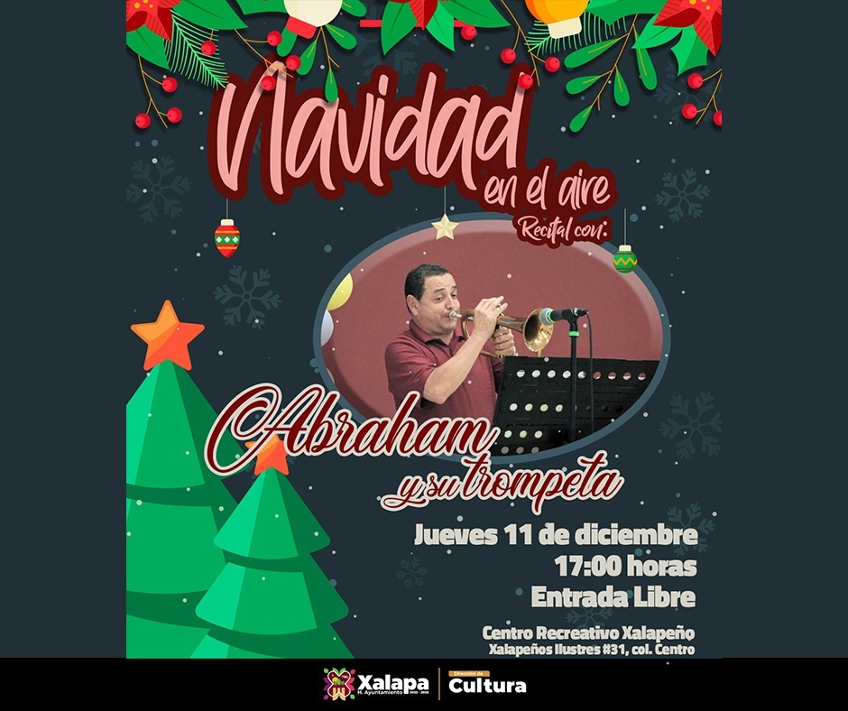 El jueves, a las 17:00 horas, Abraham y su Trompeta ofrecerán su concierto “Navidad en el aire”, en el CRX; de manera simultánea, en el Barrio Mágico de Xallitic, Gema y Ricardo pondrán el ambiente con su música.