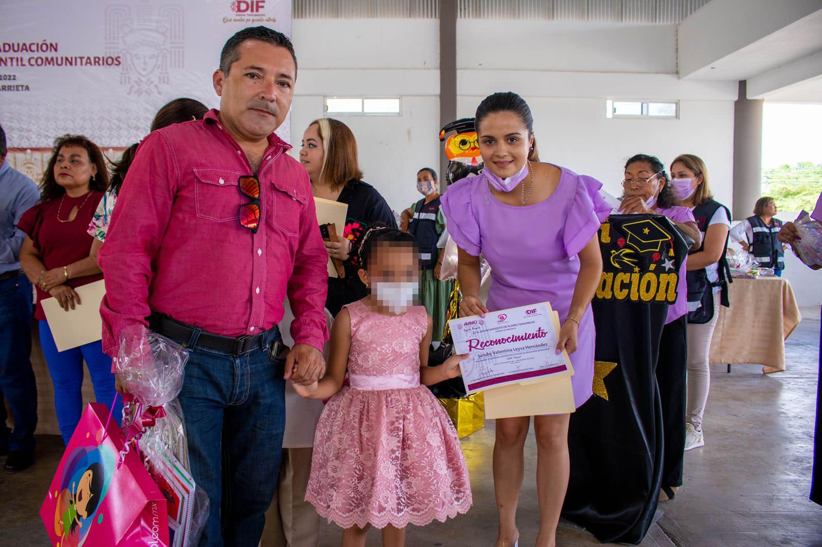 Durante el acto protocolario, autoridades municipales hicieron entrega de constancias de estudios a los infantes, los egresados recibieron un obsequio de su madrina de generación, bailaron el vals, junto a sus padrinos y familia festejaron la conclusión de su etapa de formación preescolar.