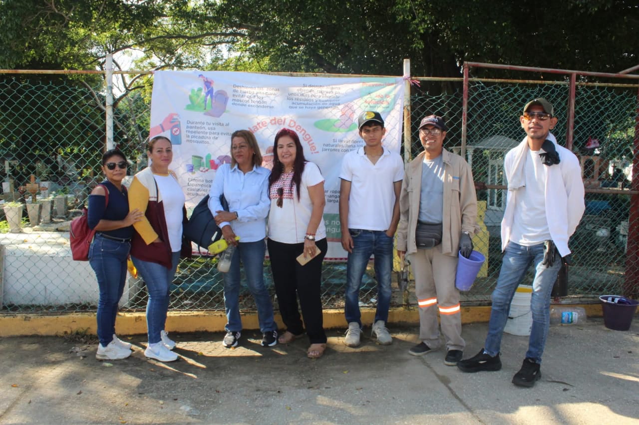 Los brigadistas realizaron tareas de recolección de objetos y recipientes, limpieza y deshierbe de áreas verdes y tumbas, relleno con arena húmeda en floreros y aplicación de larvicida en puntos estratégicos, garantizando espacios más limpios y seguros para las familias que, con motivo del Día de Muertos, visitaron a sus fieles difuntos.