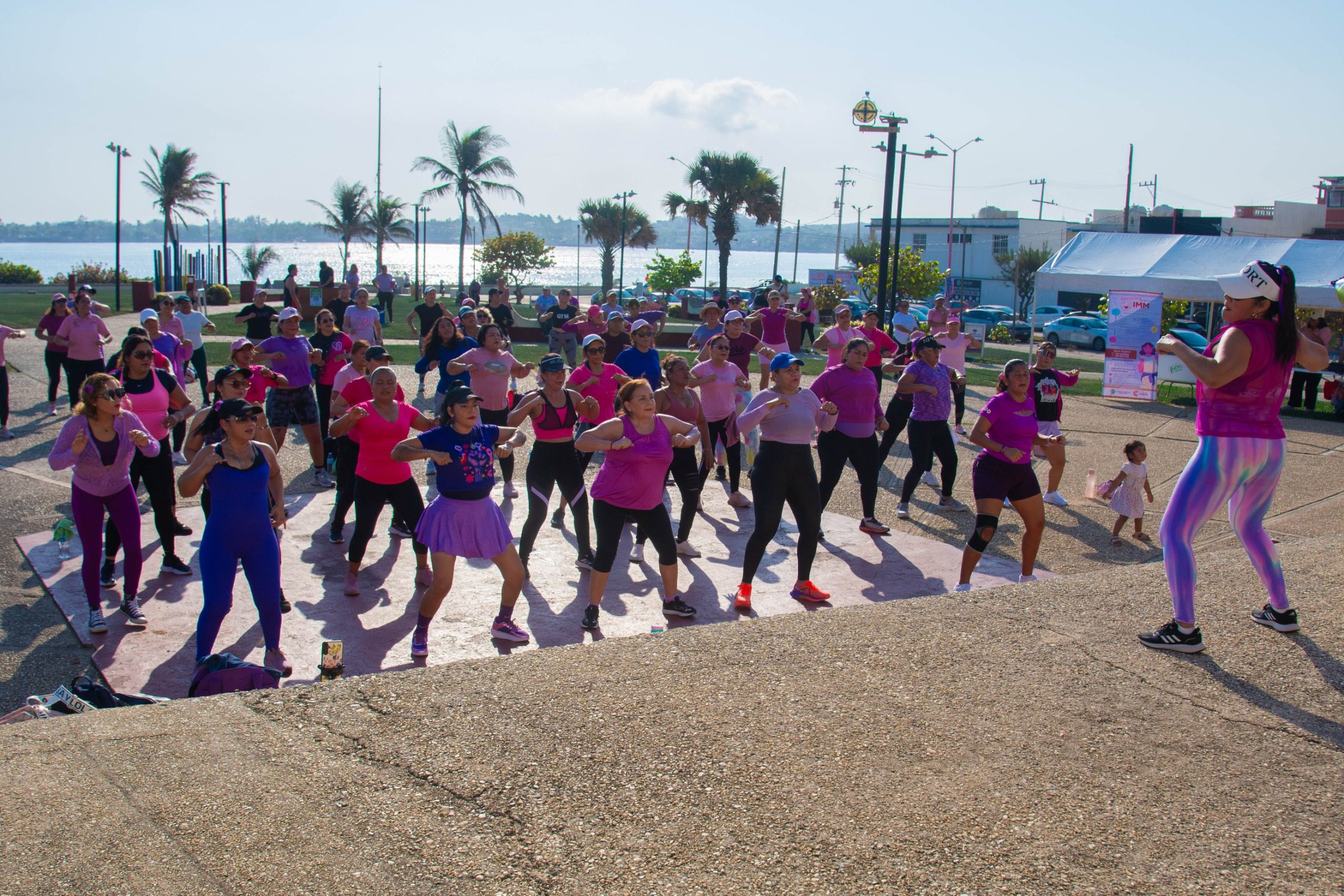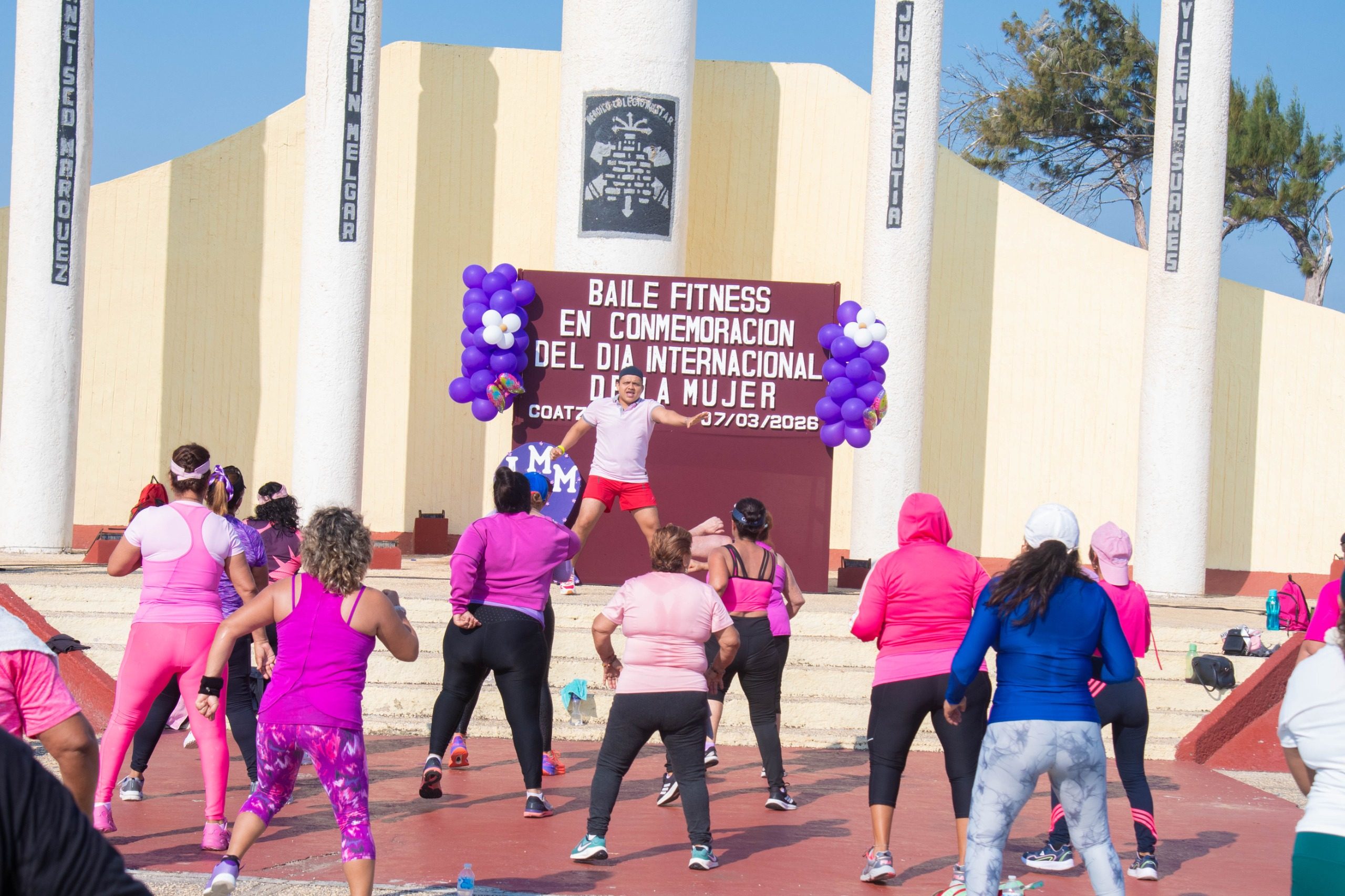 Coatzacoalcos, Ver.- En un ambiente de alegría, sororidad y activación física, el Ayuntamiento de Coatzacoalcos que preside el alcalde Pedro Miguel Rosaldo García, en coordinación con el Instituto Municipal de la Mujer (IMM), llevó a cabo con éxito el evento de Baile Fitness la mañana de este sábado en la explanada del Hemiciclo a los Niños Héroes.