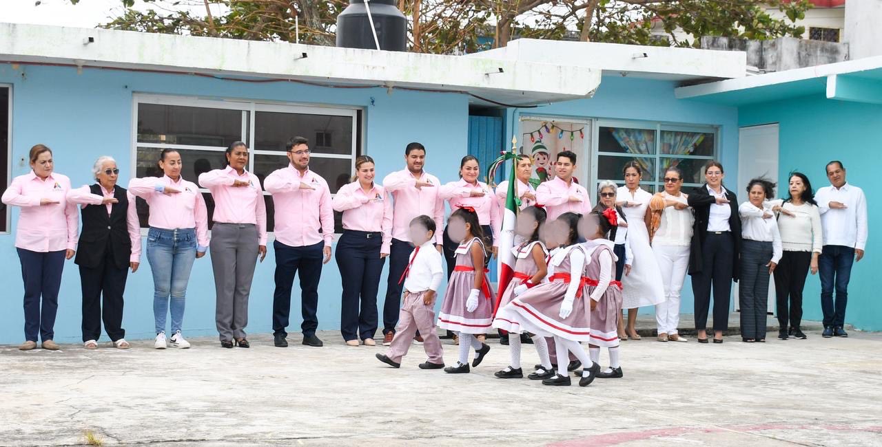 Alvarado, Ver.- Con un acto cívico celebrado en el Jardín de Niños “Clementina Uhart Fernández”, el H. Ayuntamiento de Alvarado, encabezado por el presidente municipal Alberto Ángel Cobos Márquez llevó a cabo esta ceremonia solemne acompañado de ediles, así como de autoridades municipales y representantes educativos.