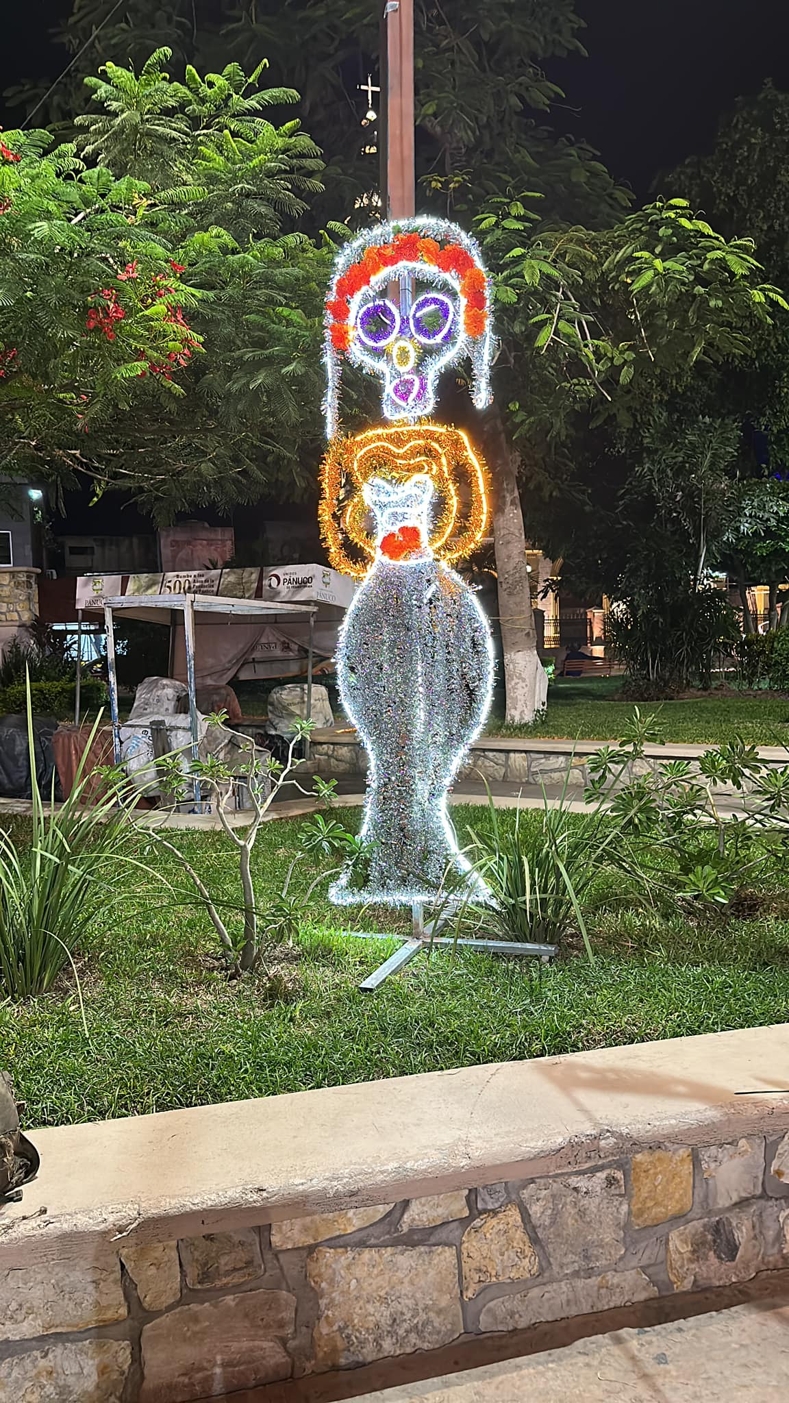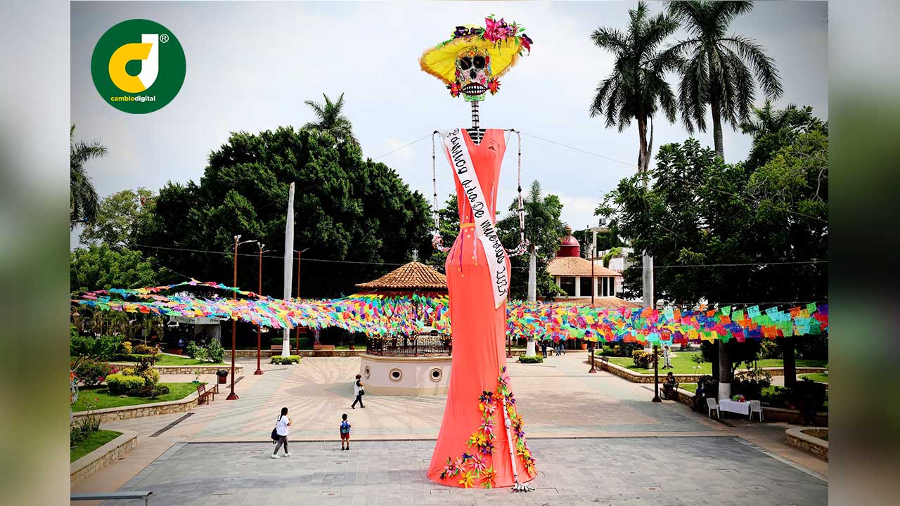 Otros adornos alusivos a estos festejos de todos santos y fieles difuntos también se instalaron en la plaza principal para recordar a quienes se han adelantado en el camino del viaje eterno.