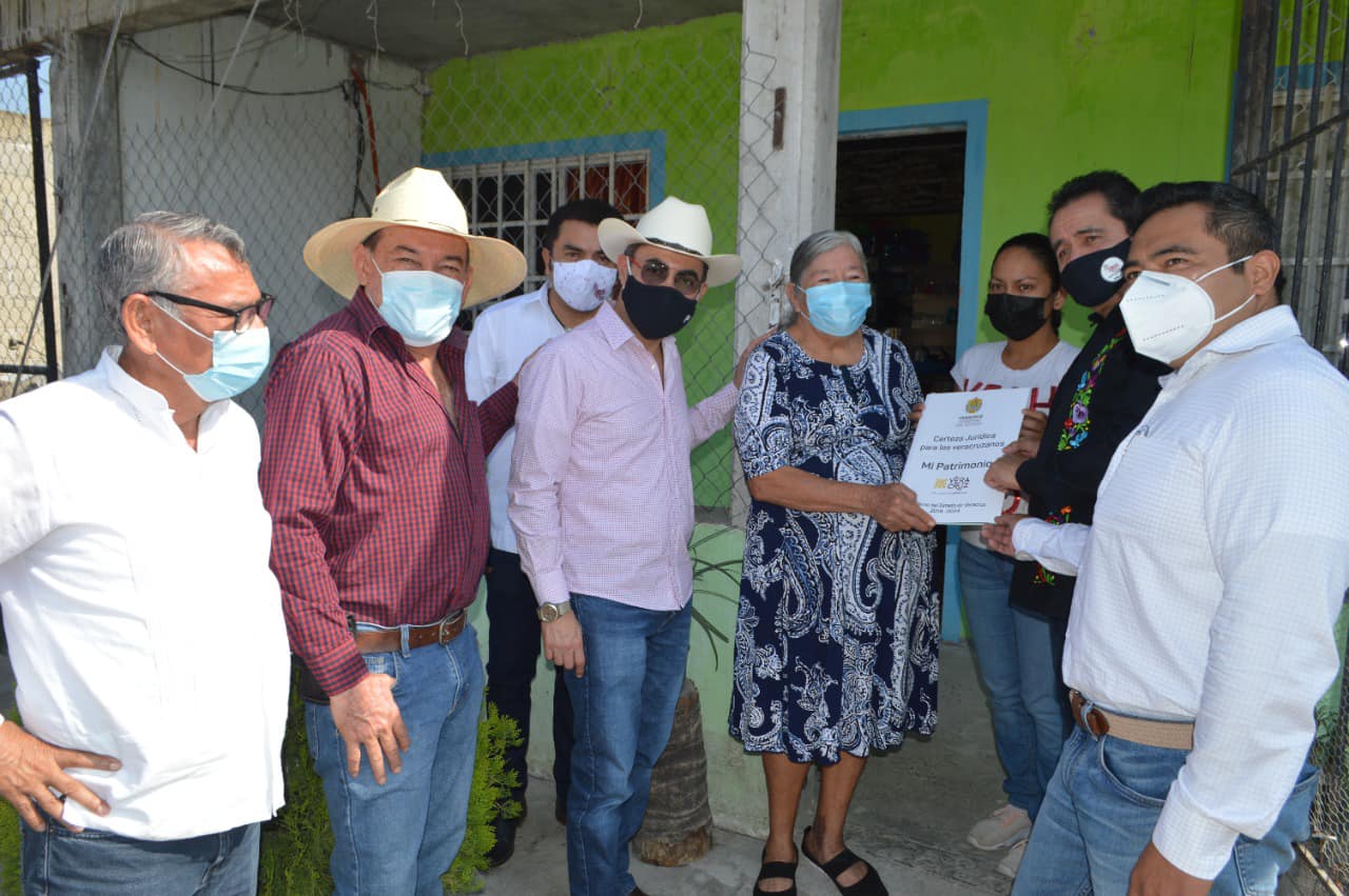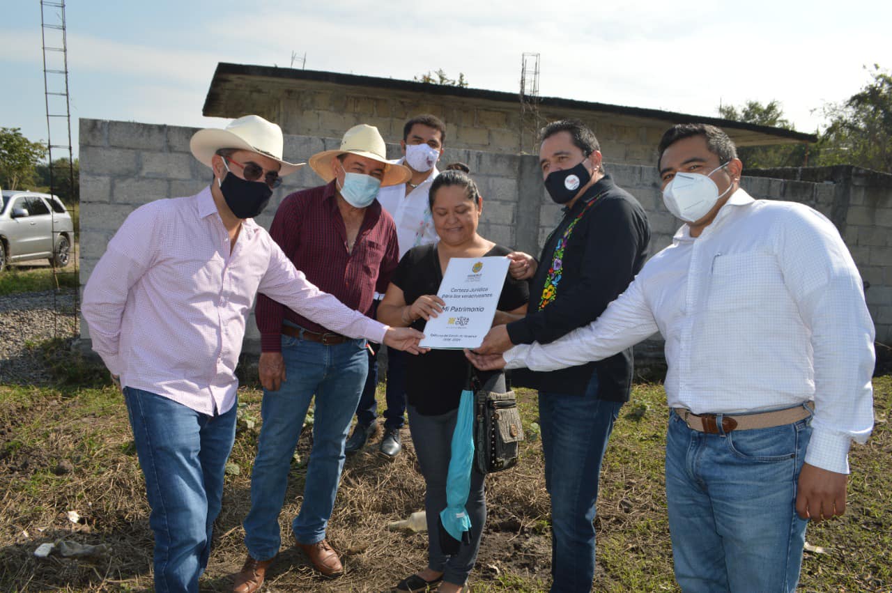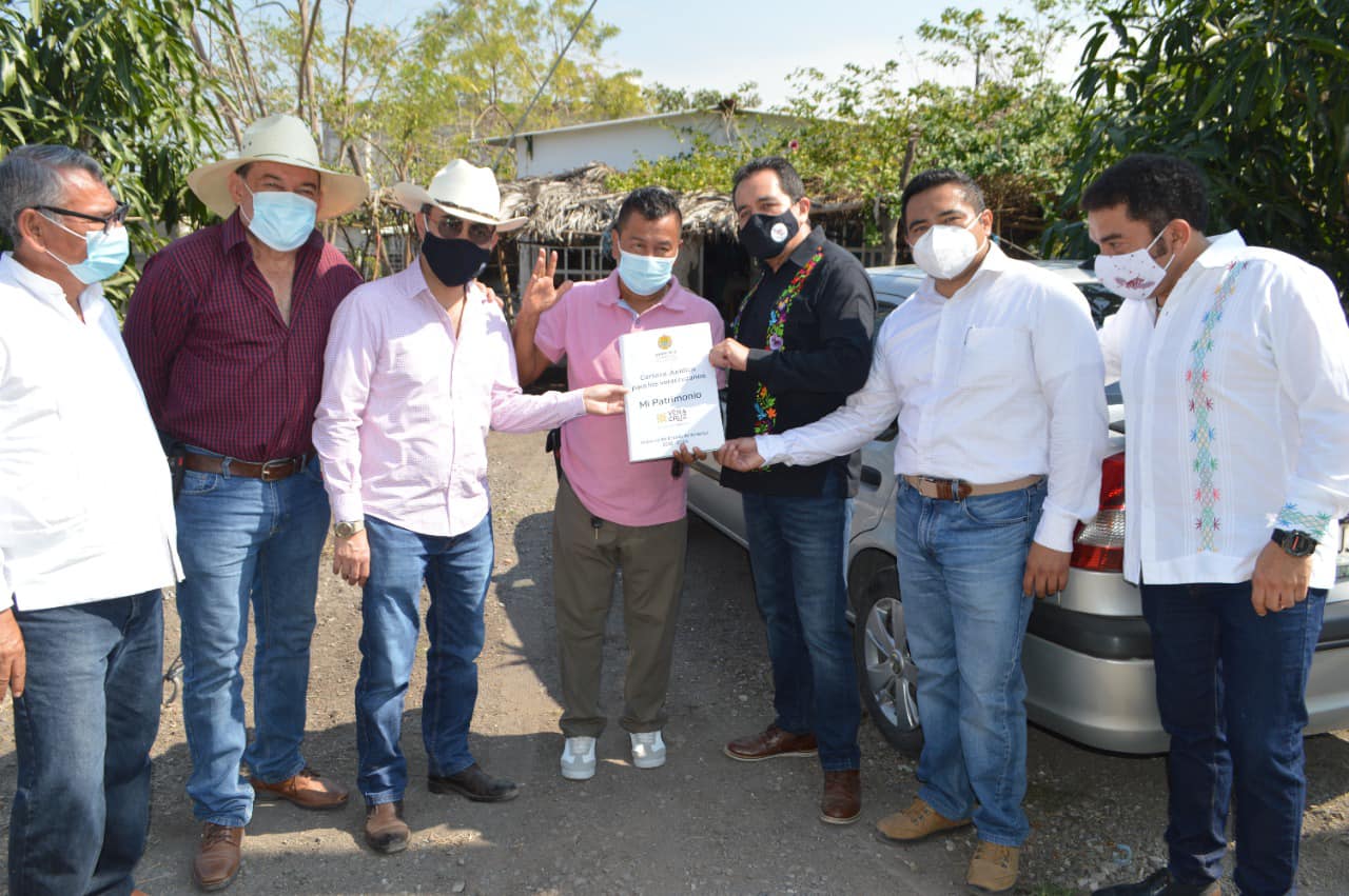 Puente Nacional, Ver.- El presidente municipal de Puente Nacional, Roberto Montiel Montiel, en compañía de Eleazar Guerrero Pérez, subsecretario de Finanzas y Administración de Gobierno del Estado; Arturo Sosa Vázquez, director general de Patrimonio del Estado; Rubén Miranda Torres, delegado Regional de Patrimonio del Estado, así como el diputado local Toño Luna, se dieron a la tarea de repartir 49 escrituras en la colonia Progreso 2000 de la localidad de Chichicaxtle, en el municipio de Puente Nacional.