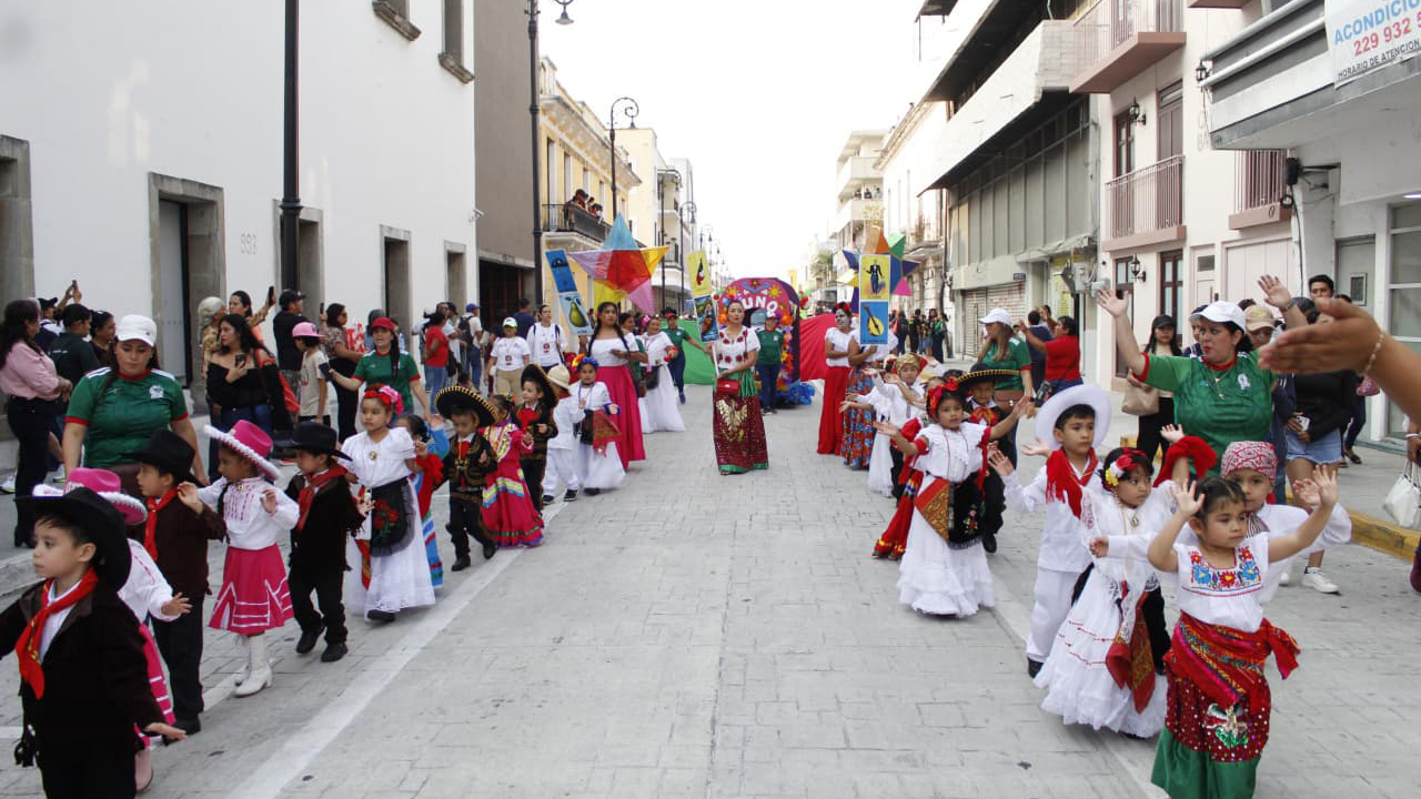 Veracruz, Ver., 11 de febrero de 2026.- En un ambiente de entusiasmo, color y tradición, se realizó el Desfile Infantil del Carnaval de Veracruz 2026, en el que participaron más de mil alumnos de nivel preescolar y primaria, llenando el corazón del Centro Histórico de música, creatividad y sonrisas.