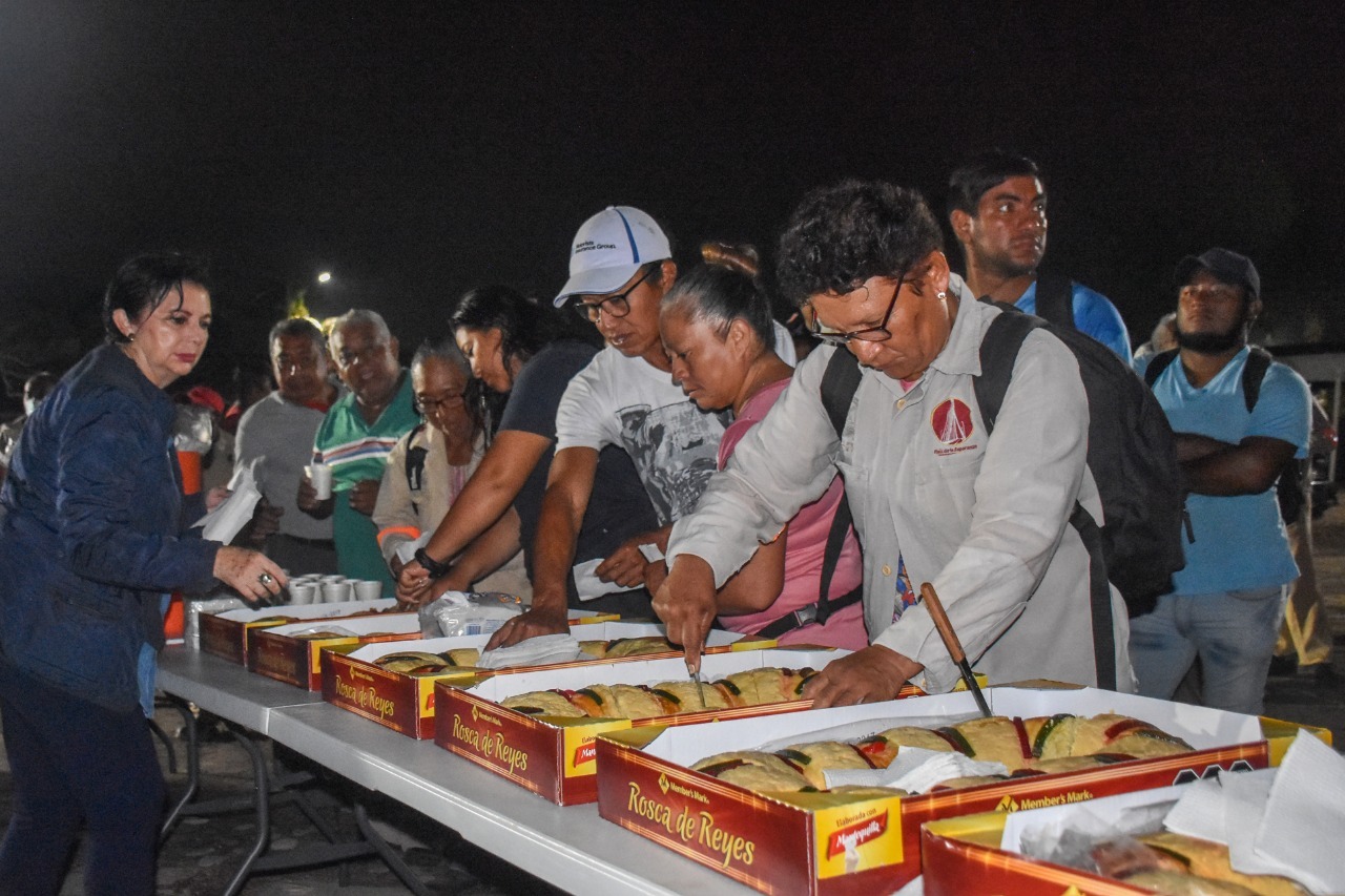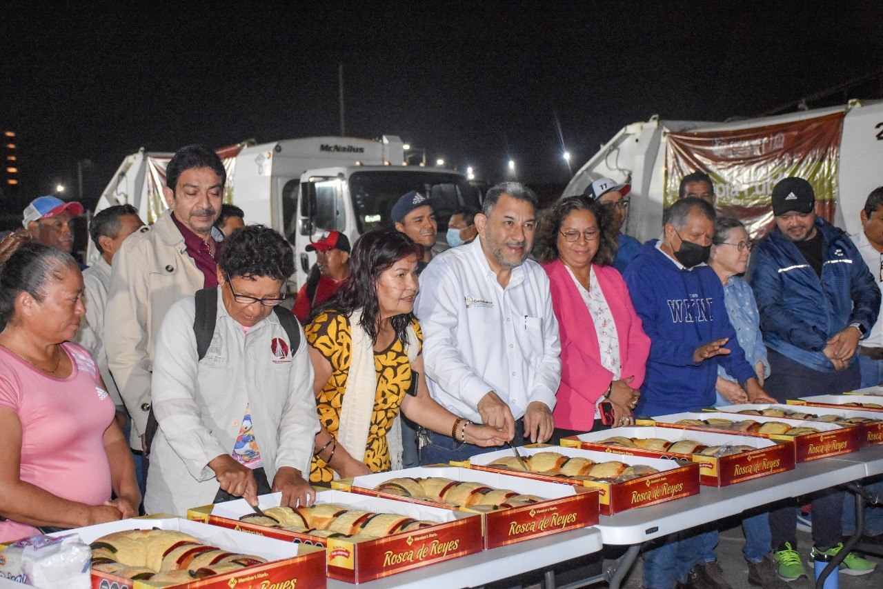 Coatzacoalcos, Ver.- Desde muy temprana hora, el presidente municipal, Amado Cruz Malpica, compartió con los trabajadores de Limpia Pública, Protección Civil y Bomberos la tradicional rosca de reyes, destacando la labor que diariamente realizan en beneficio de la población de Coatzacoalcos.