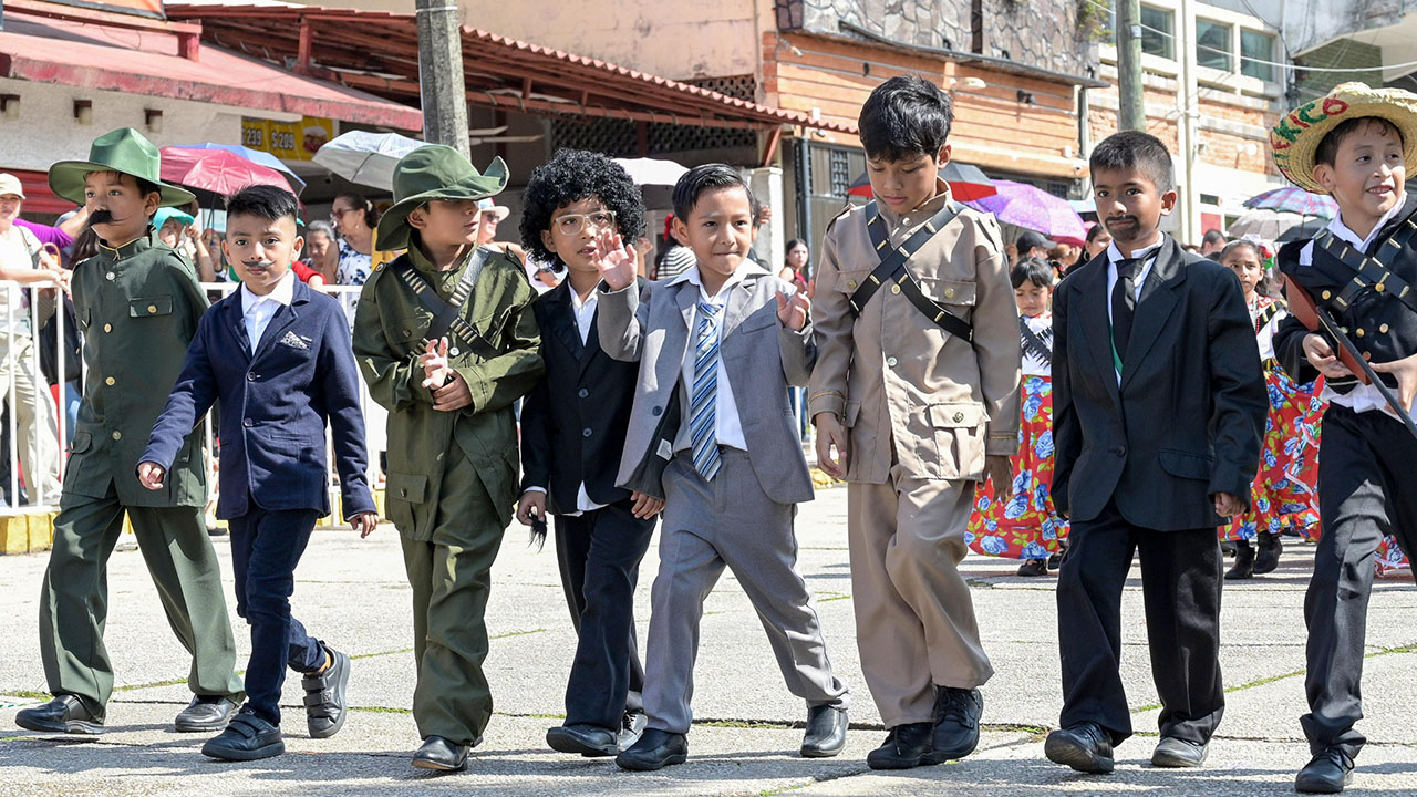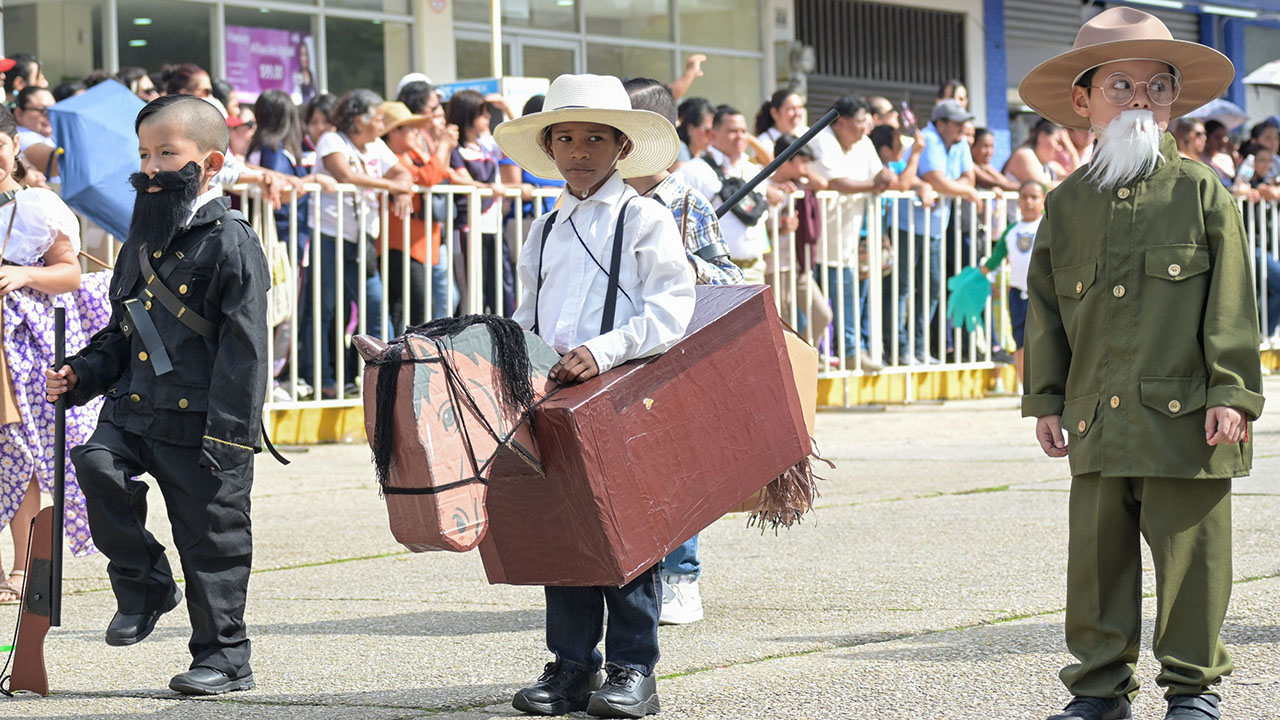 Destacaron los personajes ‘cabezones’, las ‘adelitas’, la gallardía de las bandas de guerra, los aros multicolores, los listones con los colores de la bandera, el entusiasmo de las bastoneras y las originales vestimentas que dieron un toque único al desfile.