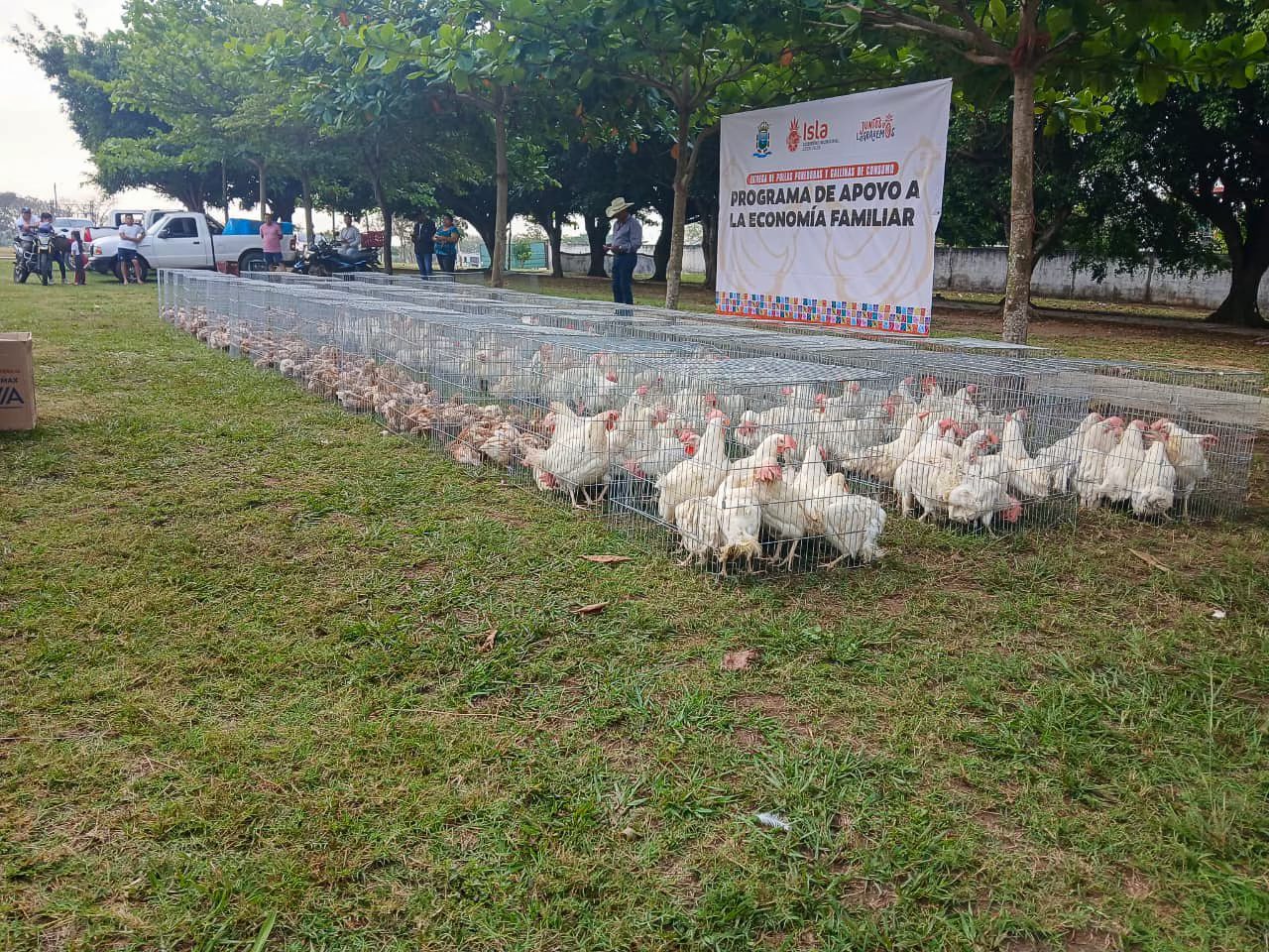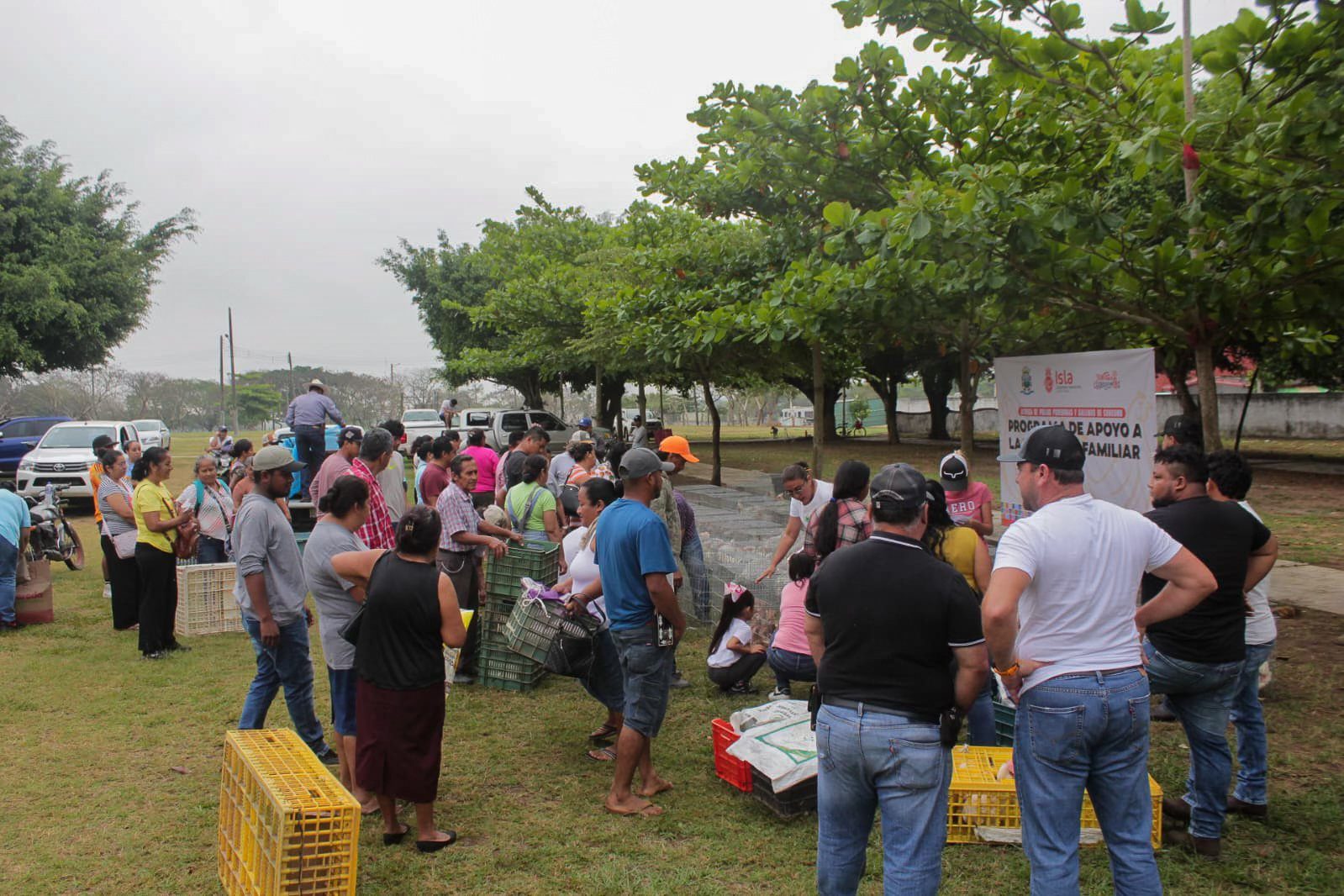 Isla, Ver.– Como parte de las acciones encaminadas a mejorar las condiciones de vida de la población, el Gobierno Municipal de Isla que preside Ramón Martínez Tress, llevó a cabo la entrega de gallinas ponedoras y aves de consumo, beneficiando a 73 familias isleñas.