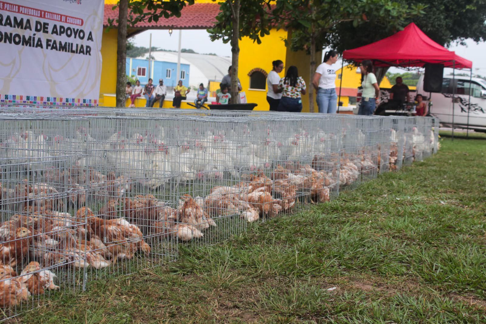 Se distribuyeron un total de 215 gallinas blancas de consumo, así como 460 pollas ponedoras coloradas, con el propósito de impulsar la producción de traspatio y fortalecer la autosuficiencia alimentaria en los hogares.