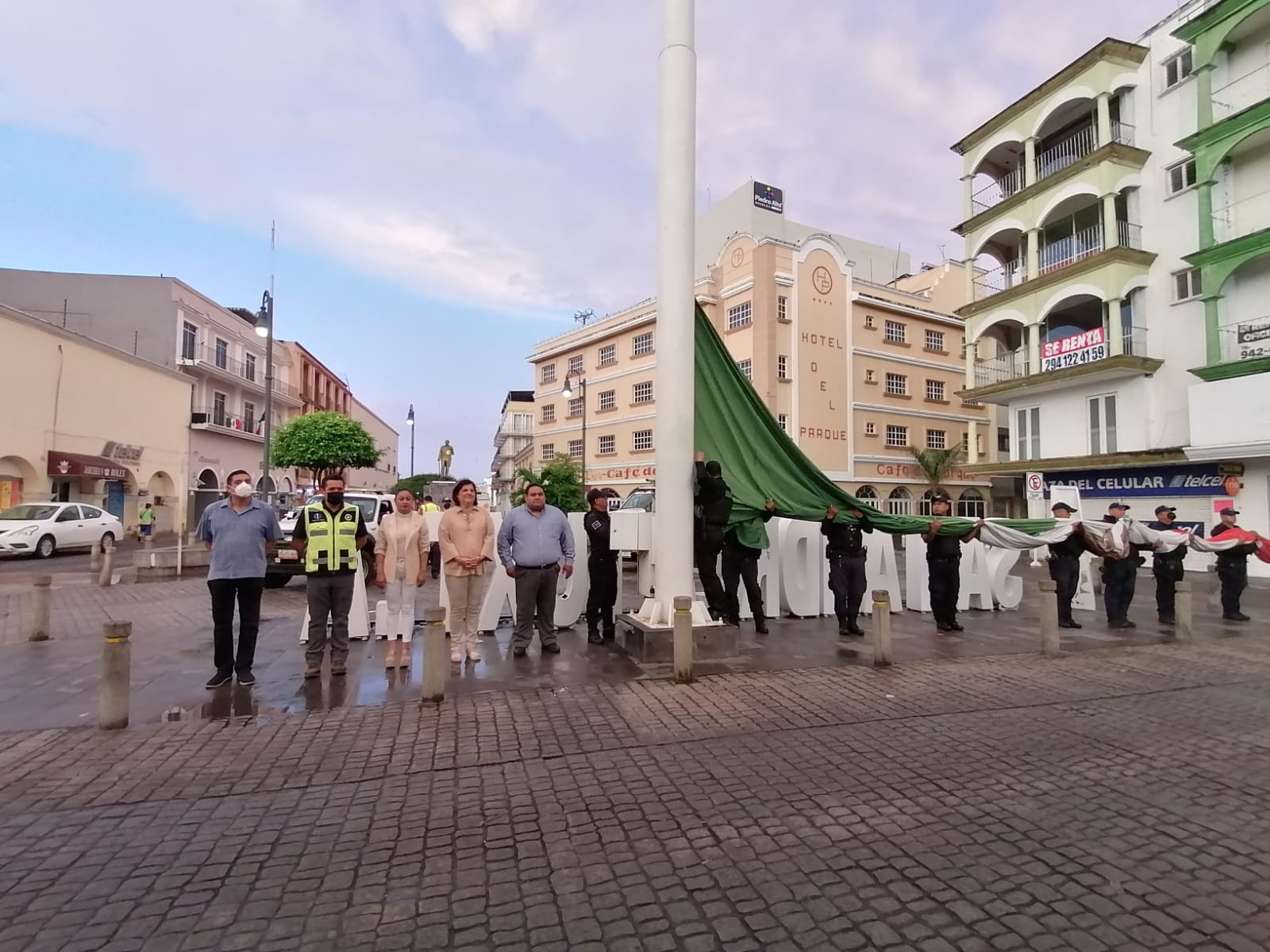 San Andrés Tuxtla, Ver.- Acompañada de integrantes de su cuerpo edilicio, la presidenta municipal de San Andrés Tuxtla, la doctora María Elena Solana Calzada, acudió con la junta cívica al izamiento de bandera a media asta en memoria de los caídos durante los sismos registrados el 19 de septiembre de 1985 en la ciudad de México, y 32 años después, en la misma fecha, pero de 2017, afectando además de la capital del país, a otros estados como Puebla y Oaxaca, este último el que registró mayores afectaciones.