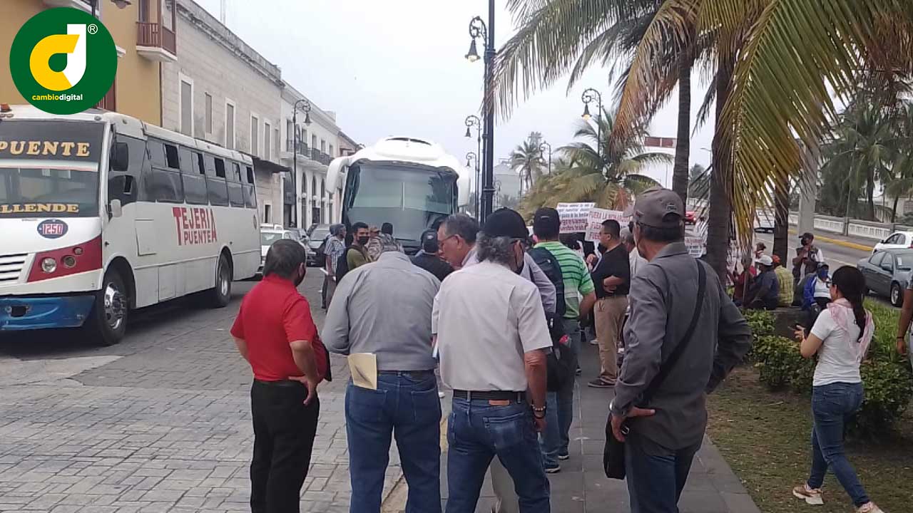 Veracruz, Ver.- Comerciantes del Malecón y de la calle Comodoro Azueta bloquearon el puente Morelos para exigir al Ayuntamiento de Veracruz les permita regresar a trabajar al paseo del Malecón de donde fueron retirados por la Marina Armada de México.