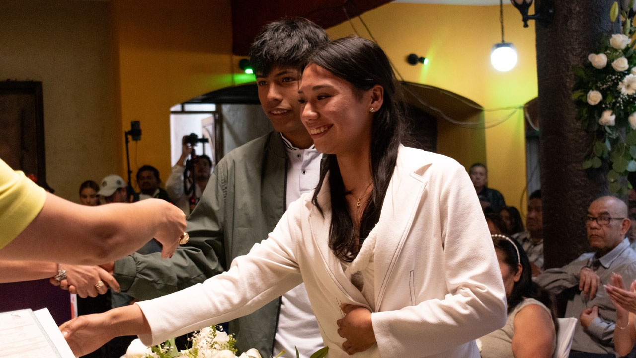 “Es un gran honor para mí ser testigo de la unión de su matrimonio, de cada uno de ustedes. El matrimonio no se construye en un día, el matrimonio se construye a través de los años basado en el respeto, desde luego en el amor, en la confianza y en la comunicación. Ustedes hoy tienen la certeza jurídica en esa unión y sabemos todos que teniendo confianza y con esa certeza jurídica que hoy tienen, ustedes formarán familias unidas, familias fuertes”, enfatizó.