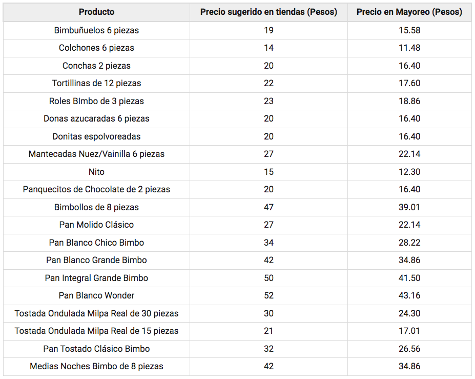 De acuerdo con la nueva tabla de precios sugeridos, esto valdrán los panes y productos de marcas como Bimbo, Wonder y Tía Rosa a partir del lunes 18 de julio.
