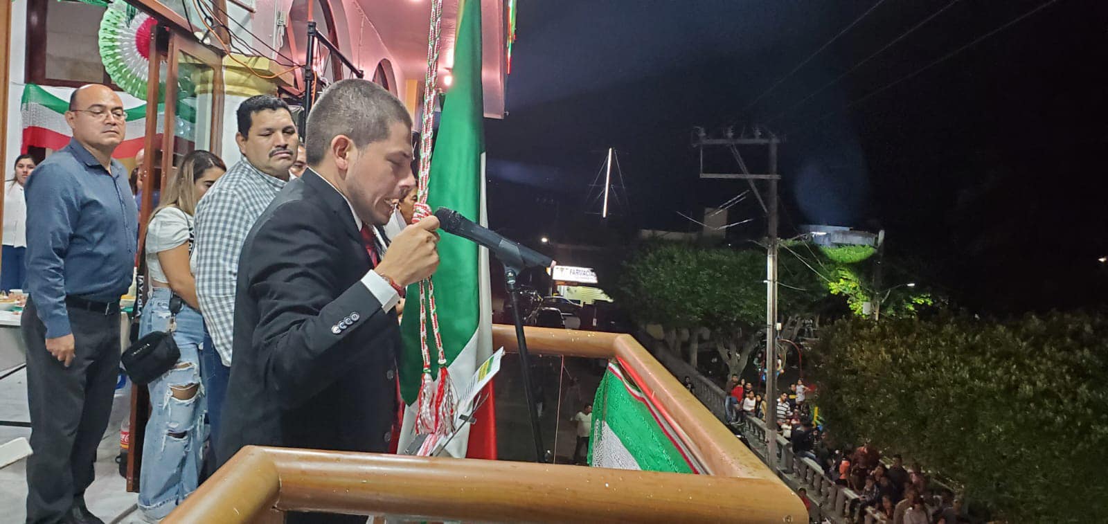 Juchique de Ferrer, Ver.- Con gran orgullo de ser mexicanos el presidente municipal Cruz Cuevas Hernández la noche de ayer dio el Grito de Independencia honrando a las y los héroes que nos dieron patria y libertad. ¡Viva México!.