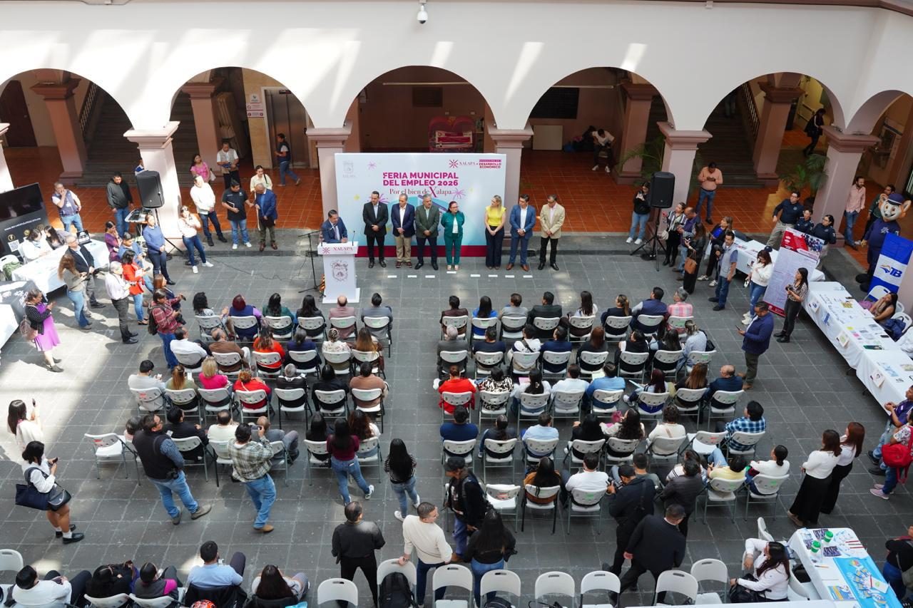 Xalapa, Ver.- En el Ayuntamiento asumimos el compromiso de impulsar el empleo como una responsabilidad pública de primer orden, ya que cuando se genera trabajo se fortalece la economía, mejora la calidad de vida de las familias y se construye una sociedad más justa, afirmó la alcaldesa, Lic. Daniela Griego Ceballos, al inaugurar con el titular de la Secretaría de Trabajo, Previsión Social y Productividad de Veracruz, Mtro. Luis Arturo Santiago Martínez, la Primera Feria Municipal del Empleo 2026, realizada este viernes en el patio central de Palacio Municipal.